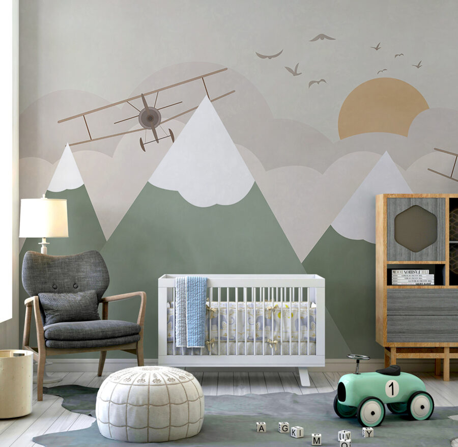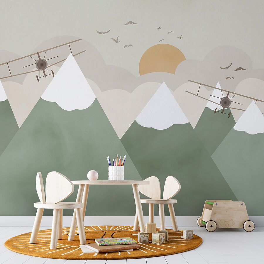 Transforme qualquer quarto numa aventura caprichosa com este encantador mural com biplanos a voar sobre picos nevados. Imagine isto: um canto acolhedor onde os mais pequenos podem sonhar em grande, voando através das nuvens e conquistando montanhas diretamente do seu quarto. As cores suaves e as linhas delicadas dão-lhe a sensação de um abraço caloroso, convidando à imaginação e criando uma atmosfera serena. É perfeito para despertar o sentimento de admiração durante a hora do conto ou do recreio. Quem sabe, pode até inspirar futuros pilotos! Imagine as histórias que se podem desenrolar aqui. Perfeito para um berçário ou uma sala de jogos divertida, este mural traz um toque de magia que é simultaneamente aventureiro e acolhedor.