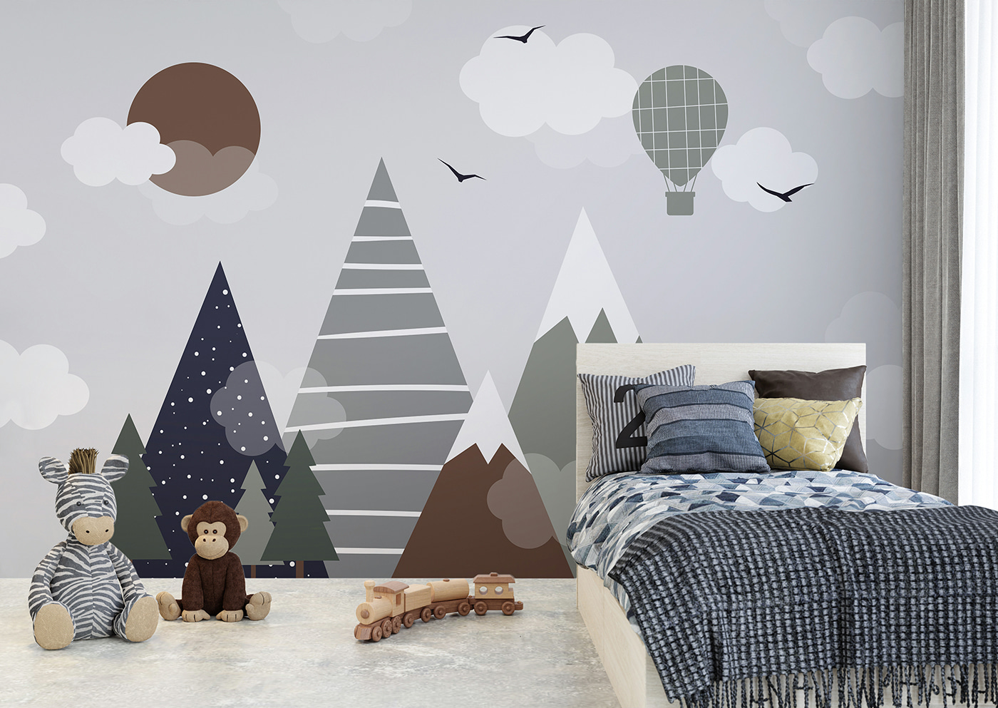 Quer seja na hora de contar histórias ou de brincar, as crianças vão sentir-se como se estivessem a entrar numa floresta de sonho. A mistura artística de picos, pinheiros e nuvens vai despertar a sua criatividade e transportá-las para terras longínquas. Ideal para bebés, crianças pequenas e mais velhos. Além disso, quem não gostaria de ter um balão de ar quente a flutuar na parede? Ideal para infantários ou qualquer espaço que necessite de um toque extra de maravilha.
