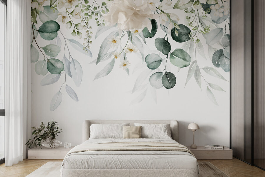Transforme qualquer espaço num oásis sereno com este deslumbrante mural de parede com folhagem elegante e deliciosos arranjos florais. Imagine entrar numa sala onde os verdes exuberantes e as flores suaves o cumprimentam como um abraço convidativo. É como trazer a natureza para dentro de casa sem os insectos – e quem não gosta disso? Este mural exala charme, perfeito para um recanto de leitura acolhedor ou uma sala de estar com estilo. O efeito de aguarela acrescenta uma qualidade de sonho, tornando mais fácil perder a noção do tempo enquanto se bebe uma chávena de chá. Os convidados sentir-se-ão atraídos, provavelmente demorando um momento para apreciar a arte. Quer se trate de uma nova atualização ou de uma remodelação completa, este mural promete infundir qualquer área com calor e vibração. Deixe a beleza da natureza inspirar a sua vida quotidiana!