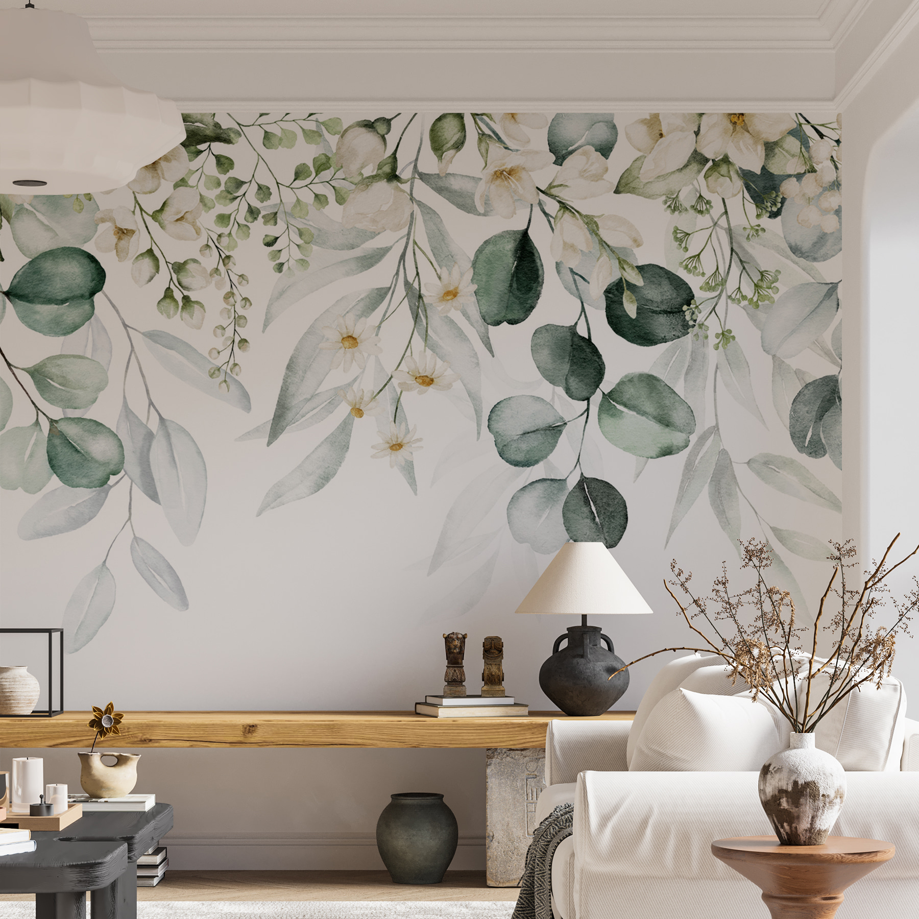 Transforme qualquer espaço num oásis sereno com este deslumbrante mural de parede com folhagem elegante e deliciosos arranjos florais. Imagine entrar numa sala onde os verdes exuberantes e as flores suaves o cumprimentam como um abraço convidativo. É como trazer a natureza para dentro de casa sem os insectos – e quem não gosta disso? Este mural exala charme, perfeito para um recanto de leitura acolhedor ou uma sala de estar com estilo. O efeito de aguarela acrescenta uma qualidade de sonho, tornando mais fácil perder a noção do tempo enquanto se bebe uma chávena de chá. Os convidados sentir-se-ão atraídos, provavelmente demorando um momento para apreciar a arte. Quer se trate de uma nova atualização ou de uma remodelação completa, este mural promete infundir qualquer área com calor e vibração. Deixe a beleza da natureza inspirar a sua vida quotidiana!