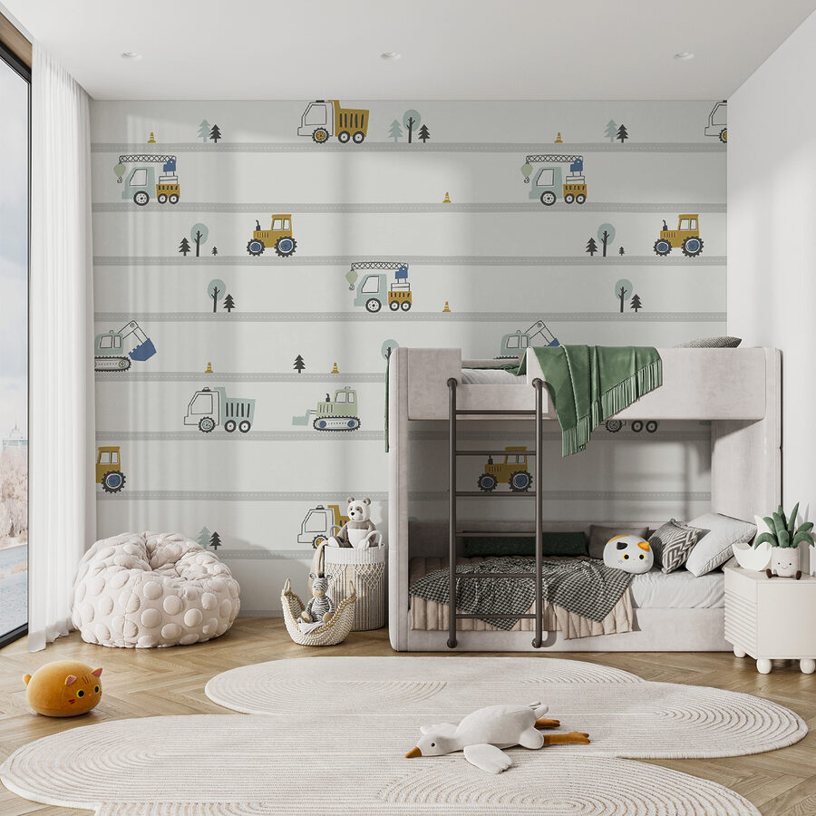 Quer dar um toque lúdico ao quarto do seu filho? Diga olá aos “Fotomurais trator amarelo com rodas pretas” – uma deliciosa mistura de charme e diversão! Perfeito para crianças, especialmente para os mais pequenos que não se fartam de grandes máquinas e tractores. Este mural não se limita a colar na parede; transforma o espaço numa mini terra de aventuras onde a imaginação toma o lugar do condutor. Os amarelos vibrantes e os pretos clássicos contra um fundo frio fazem sobressair os tractores, convidando-o a quase ouvir o zumbido dessas grandes rodas.