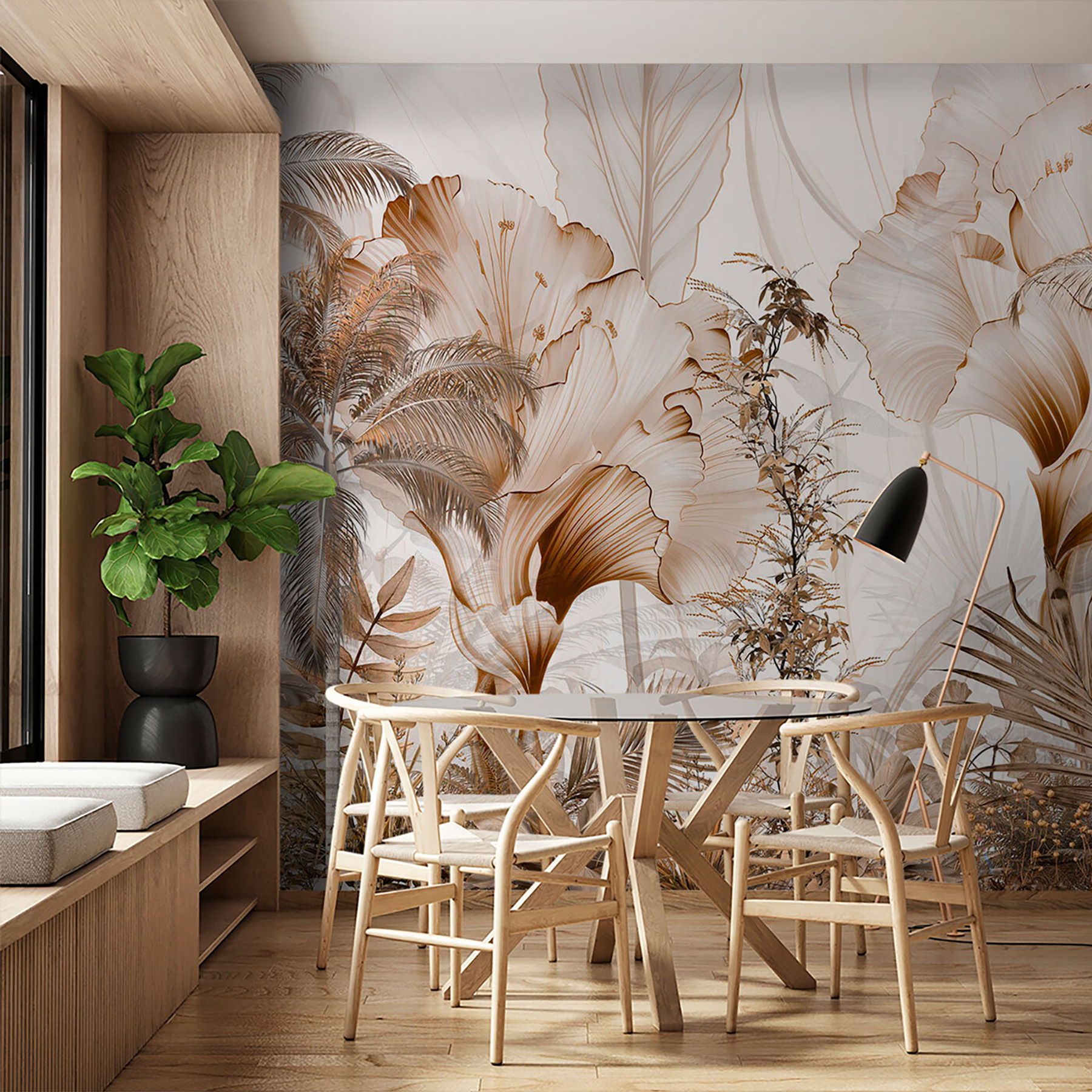 Papel de parede Papel de parede Folhagem tropical em tons sépia (REF: u96478)