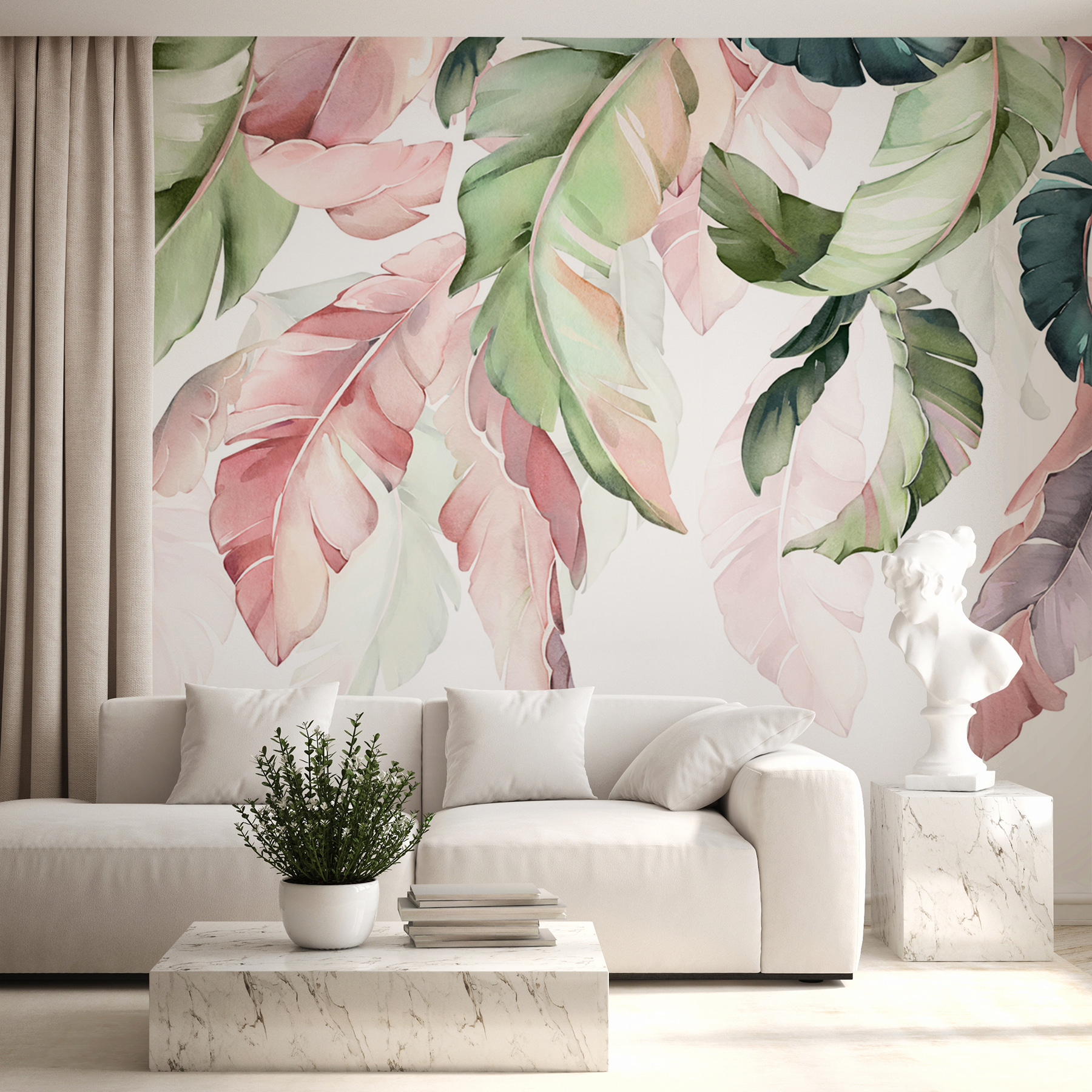 Transforme qualquer divisão num refúgio frondoso com este deslumbrante mural com folhas coloridas que formam um gracioso dossel. Imagine entrar no seu espaço e sentir-se como se tivesse sido transportado para uma floresta serena. As tonalidades suaves de verde, cor-de-rosa e padrões suaves não se limitam a decorar a parede – convidam a uma vibração divertida mas calma, perfeita para noites aconchegantes ou manhãs alegres. Quer seja uma peça central da sala de estar ou um pano de fundo para conversas em casa, este mural acrescenta um toque de elegância da natureza sem a necessidade de um jardim. Os amantes da natureza vão certamente apreciar a vibração, para não mencionar que serve como um fantástico início de conversa. Não é necessário um polegar verde!