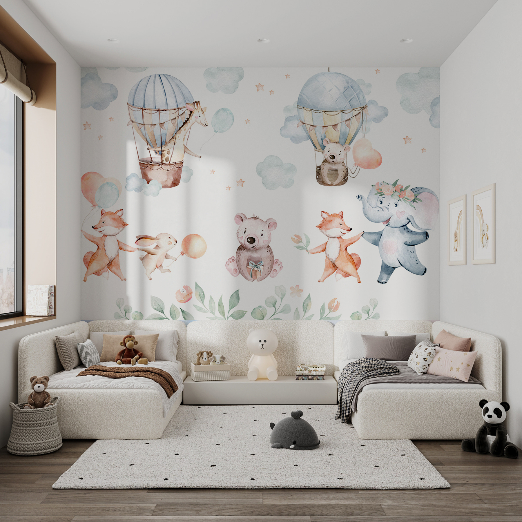 Imagine o prazer absoluto de entrar numa sala e ser recebido por uma Girafa caprichosa a flutuar para cima, para cima e para longe num balão de ar quente! Perfeito para berçários e quartos de crianças, este mural de parede “Girafa num balão de ar quente” dá um toque mágico a qualquer espaço. Encantador, não é? É como mergulhar diretamente numa aventura de um livro de histórias de sonho onde a imaginação não tem limites. Acrescente as nuvens fofas e os animais sorridentes, e parece que a parede está a dar um abraço caloroso.