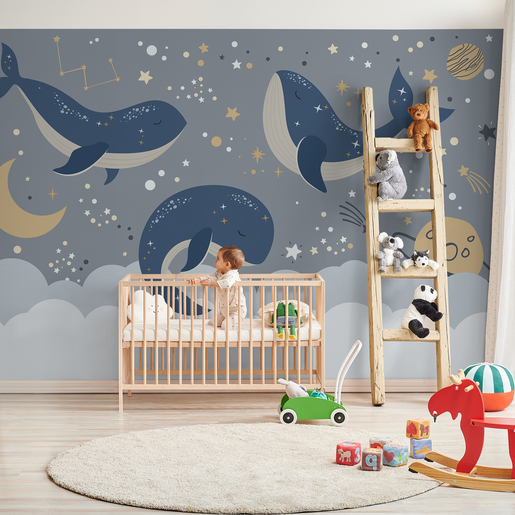 Quer dar um toque de maravilha ao quarto do seu filho? Veja este sonhador “Mural de Parede Baleia Azul com Cauda Branca e Estrelas!” Imagine isto na parede do seu filho – é como se fosse o seu próprio pedaço do céu noturno, completo com baleias azuis fofas a flutuar suavemente num mar de estrelas e constelações. Perfeito para infantários ou para o espaço de qualquer pequeno aventureiro, acrescenta o toque certo de magia e serenidade. Além disso, estas baleias sonolentas parecem prometer bons sonhos a quem adormecer debaixo delas. É extravagante, calmante e um pouco divertido – um cenário encantador para histórias de embalar e sestas da tarde. Quer seja para o seu filho, filha ou para aqueles momentos de carinho com o seu bebé, transforma qualquer parede numa aventura calmante e estrelada.