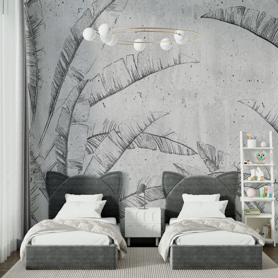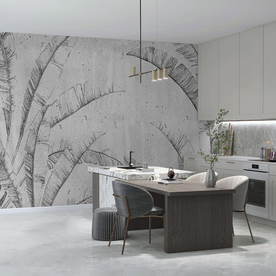 Imagine isto na sua parede – “Padrão de folhas tropicais em betão”. Um mural que grita tanto chique urbano como um pequeno oásis na selva. É perfeito se estiver à procura de um espaço que pareça arejado e ao mesmo tempo com um chão. Imagine-se a beber o seu café da manhã, a apanhar o jogo de luz através daquelas linhas de folhas de palmeira e a sentir aquela vibração fresca e concreta. É como uma pequena fuga exótica, mas sem precisar de um bilhete de avião. Quase se espera ouvir os pássaros tropicais, certo? Este mural é uma viragem de cabeça descontraída, ideal para quem adora essa mistura de natureza e estilo moderno.