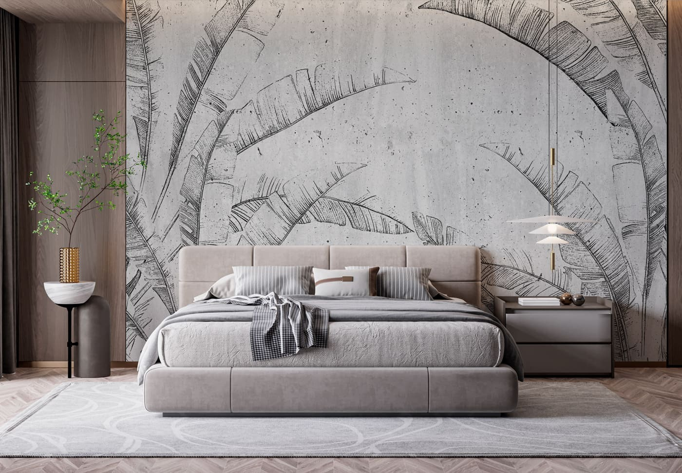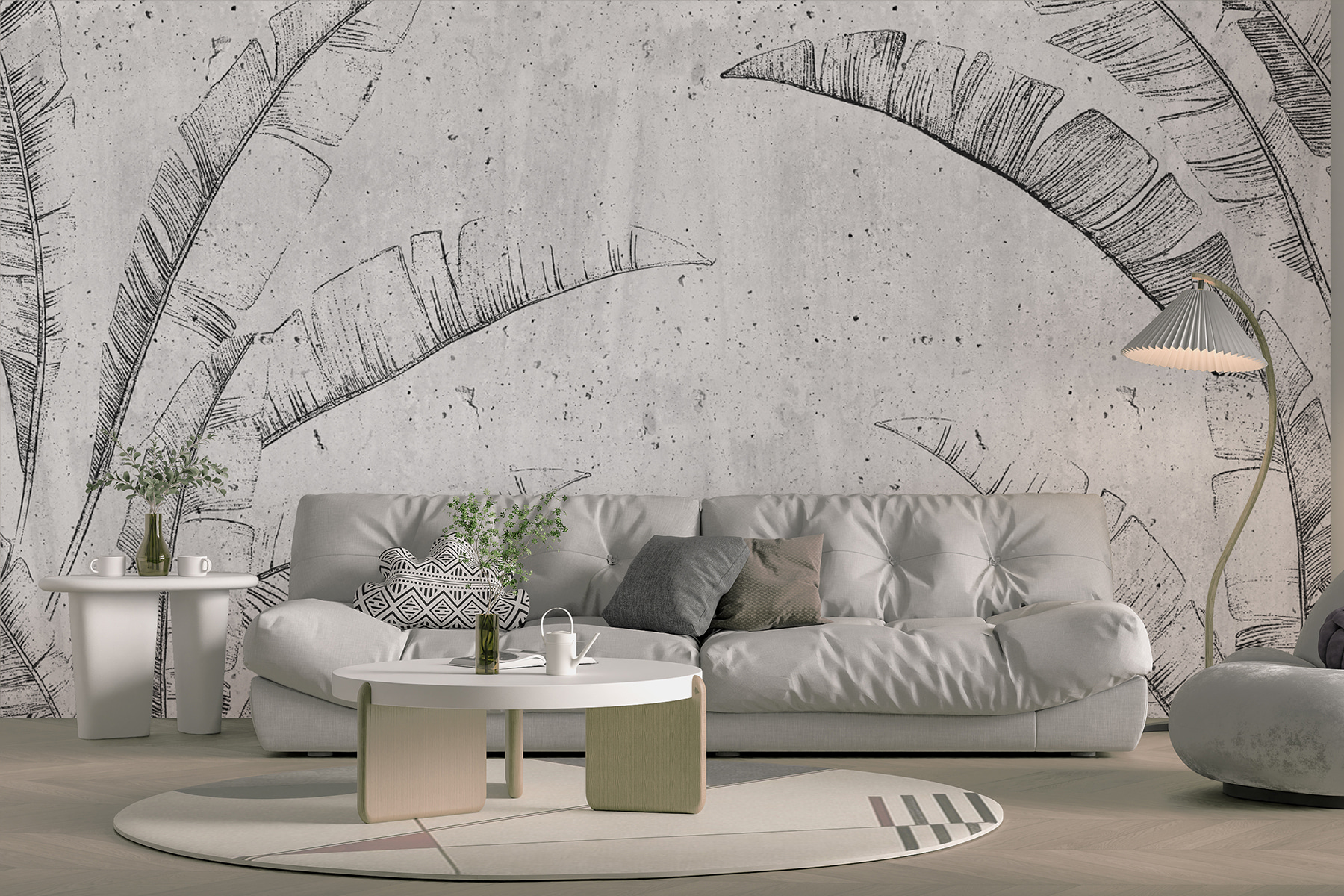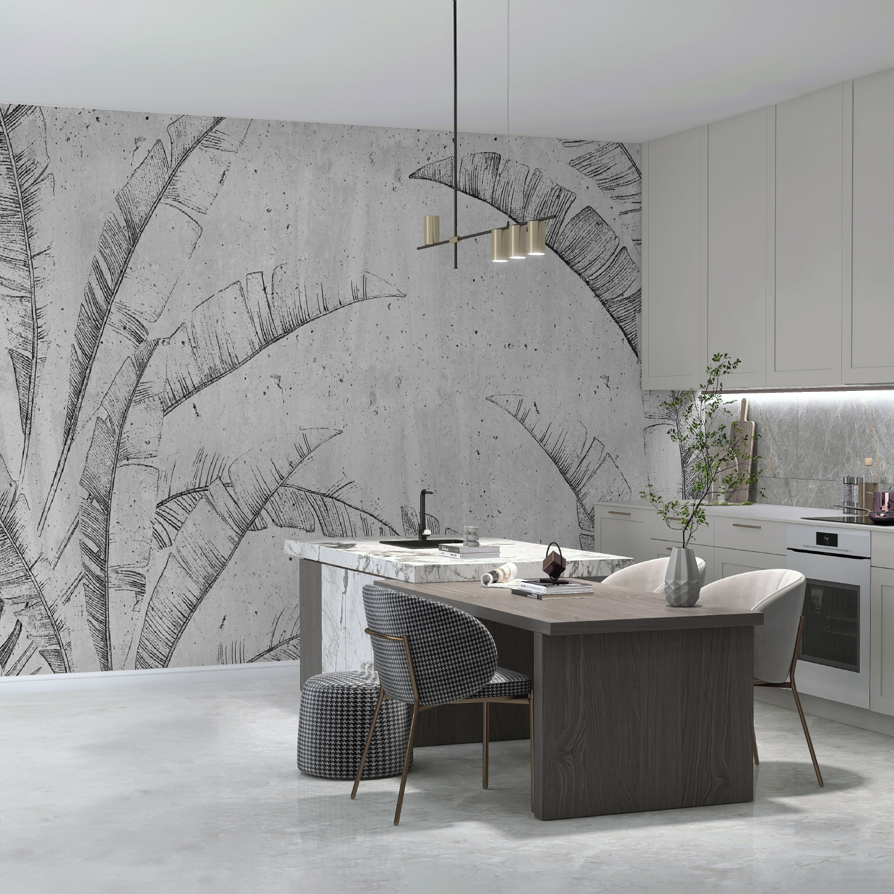 Imagine isto na sua parede – “Padrão de folhas tropicais em betão”. Um mural que grita tanto chique urbano como um pequeno oásis na selva. É perfeito se estiver à procura de um espaço que pareça arejado e ao mesmo tempo com um chão. Imagine-se a beber o seu café da manhã, a apanhar o jogo de luz através daquelas linhas de folhas de palmeira e a sentir aquela vibração fresca e concreta. É como uma pequena fuga exótica, mas sem precisar de um bilhete de avião. Quase se espera ouvir os pássaros tropicais, certo? Este mural é uma viragem de cabeça descontraída, ideal para quem adora essa mistura de natureza e estilo moderno.
