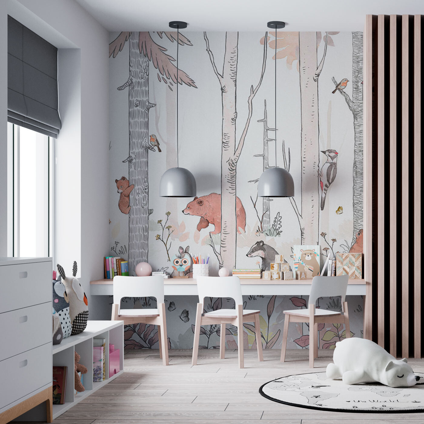 Imagine uma floresta acolhedora mesmo no seu quarto de criança – é exatamente isso que este mural traz! “Grupo de Animais numa Floresta” é como abrir um livro de histórias diretamente na sua parede. Está repleto de criaturas encantadoras da floresta: esquilos curiosos, coelhos saltitantes, ursos preguiçosos e até um veado atencioso que chama a sua atenção. As cores suaves e terrosas dão-lhe um ar calmo e mágico. Sabe, como o tipo de lugar que sonhava explorar quando era criança. Crianças? Vão adorá-lo. E até os adultos podem encontrar um pouco de paz e capricho no seu encanto. Imagine histórias de embalar com este pano de fundo – aventura instantânea! Não é apenas um mural, é um mundo totalmente novo onde se pode perder. Perfeito para infantários, salas de jogos ou para qualquer lugar onde seja necessária uma pitada de magia da floresta. Crie memórias e desperte a imaginação – diretamente na sua parede!
