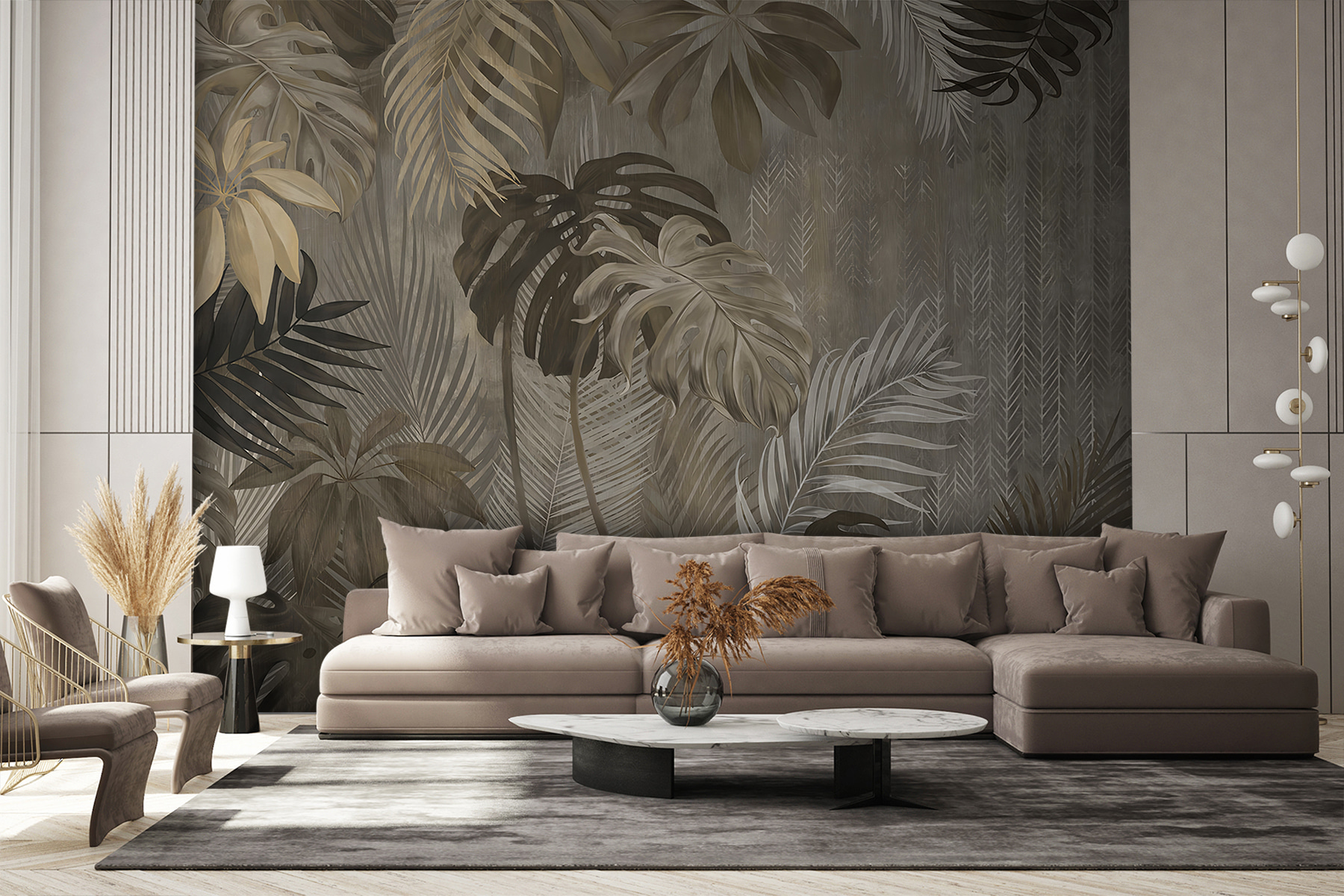 4 avaliações de Papel de parede Elegantes folhas tropicais num fundo texturado