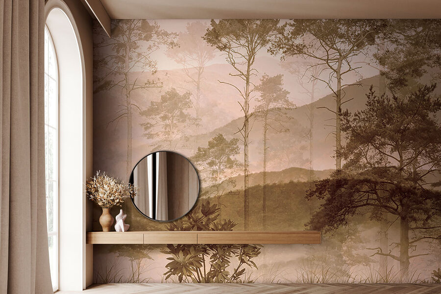 Além disso, os tons subtis e o efeito de névoa suave tornam-no versátil em qualquer estilo de decoração. Portanto, não é apenas um mural; é um retiro calmo que traz um pouco de magia da natureza para a sua casa. 🌲🗻