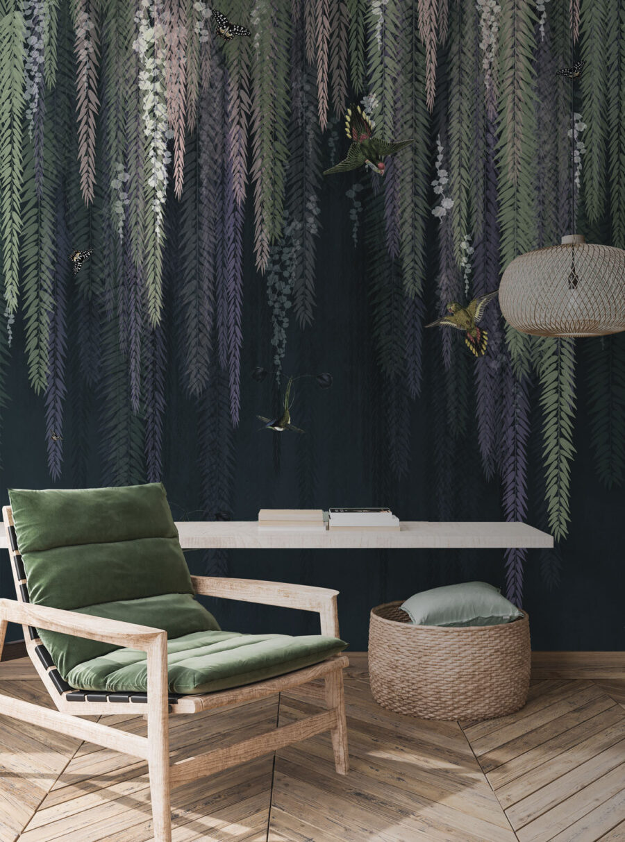 Imagine entrar num espaço onde é instantaneamente levado para uma floresta serena com pássaros a dançar graciosamente no ar. Este mural “Bird flying in the air” é pura magia para qualquer divisão! A vegetação luxuriante e os pássaros gentis criam uma vibração quase de conto de fadas, perfeita para um quarto ou um recanto de leitura acolhedor.