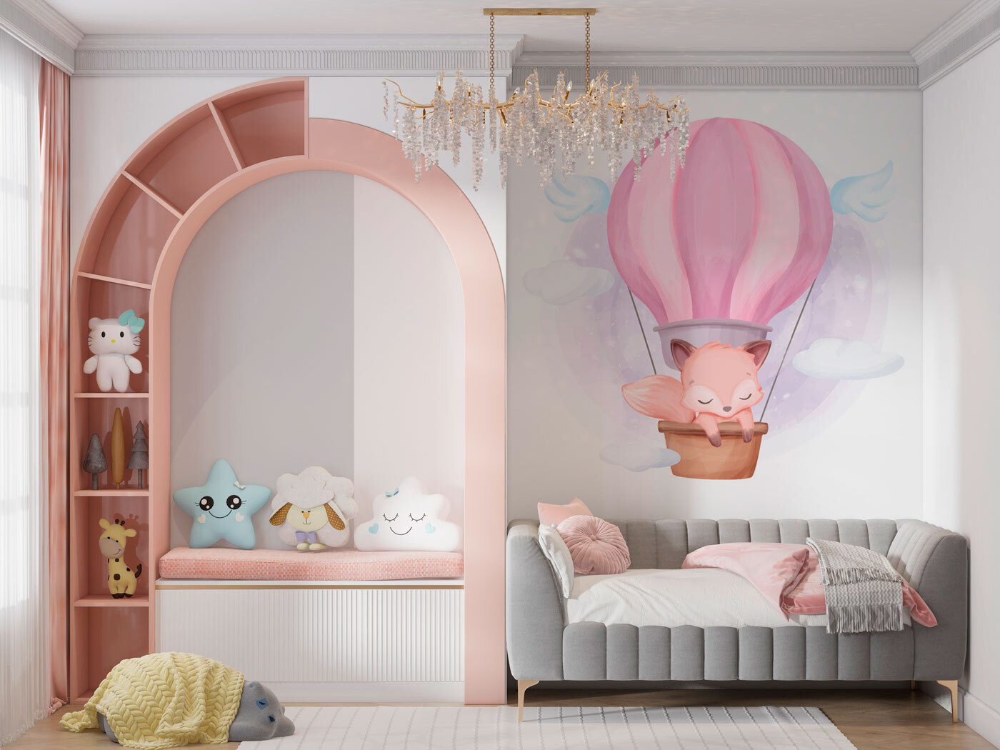 Imagine-se a flutuar para a terra dos sonhos numa nuvem fofa, com um balão de ar quente cor-de-rosa para o levar até lá! Este mural de parede “Balão de ar quente cor-de-rosa” é perfeito para o quarto de uma criança – quer seja para o seu filho aventureiro ou para a sua filha sonhadora. As cores pastel sonhadoras e a adorável raposa adormecida fazem com que este mural seja como um abraço caloroso. Acrescenta o toque certo de capricho e magia a qualquer espaço.