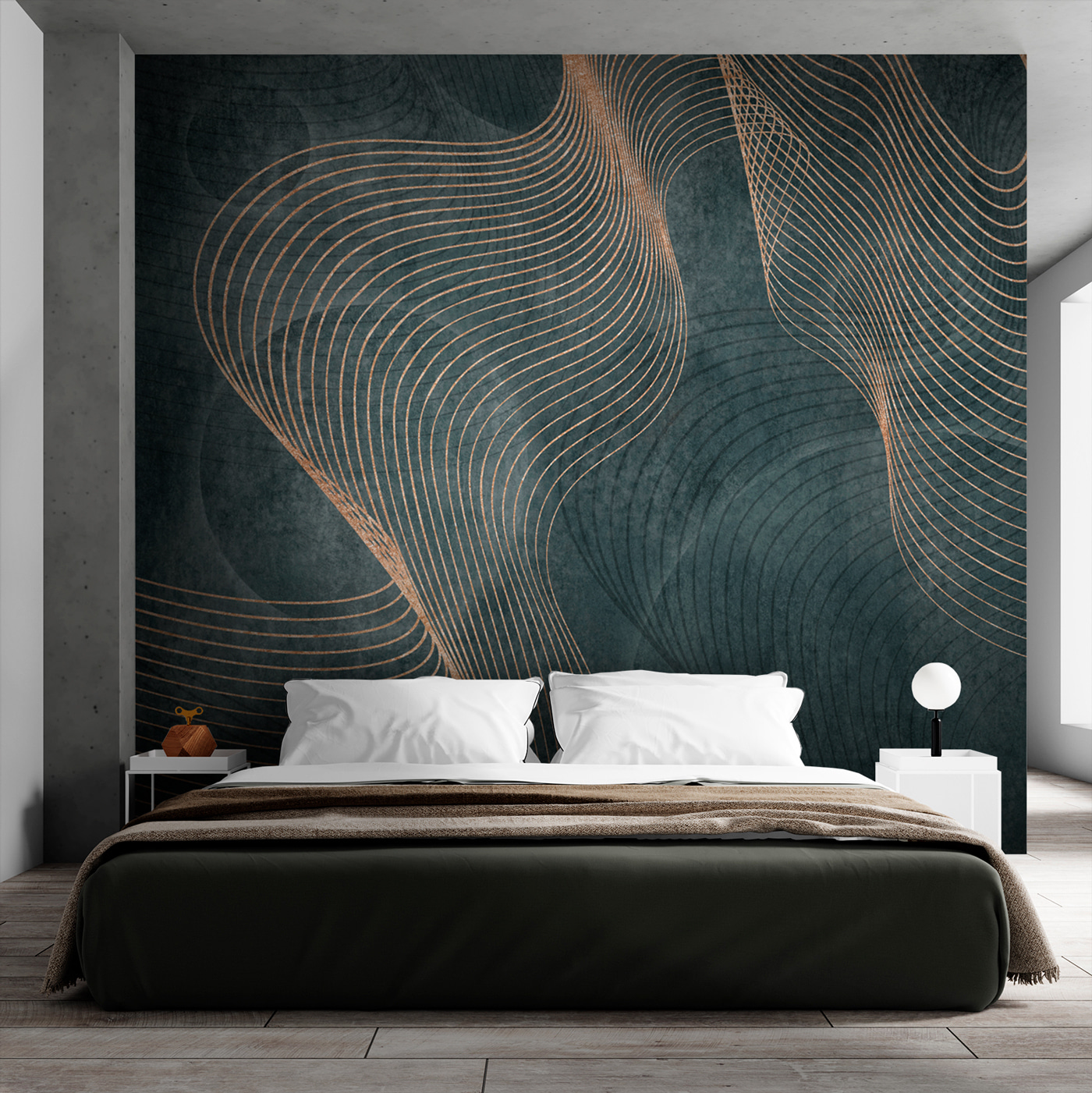 Transforme uma parede simples numa obra-prima com este mural de parede cativante. Imagine ondas abstractas a dançar sobre um fundo escuro, criando uma vibração que é simultaneamente calmante e intrigante. É como trazer uma peça de arte moderna diretamente para a sua casa, provocando conversas com quem a visita. Imagine noites aconchegantes passadas a olhar para as curvas suaves, perdido em pensamentos ou a sonhar acordado com lugares longínquos. Este mural não é apenas decoração; é um estado de espírito, um sentimento que acrescenta profundidade a qualquer divisão. Perfeito para fazer com que aquela parede sem graça de repente se sinta viva!