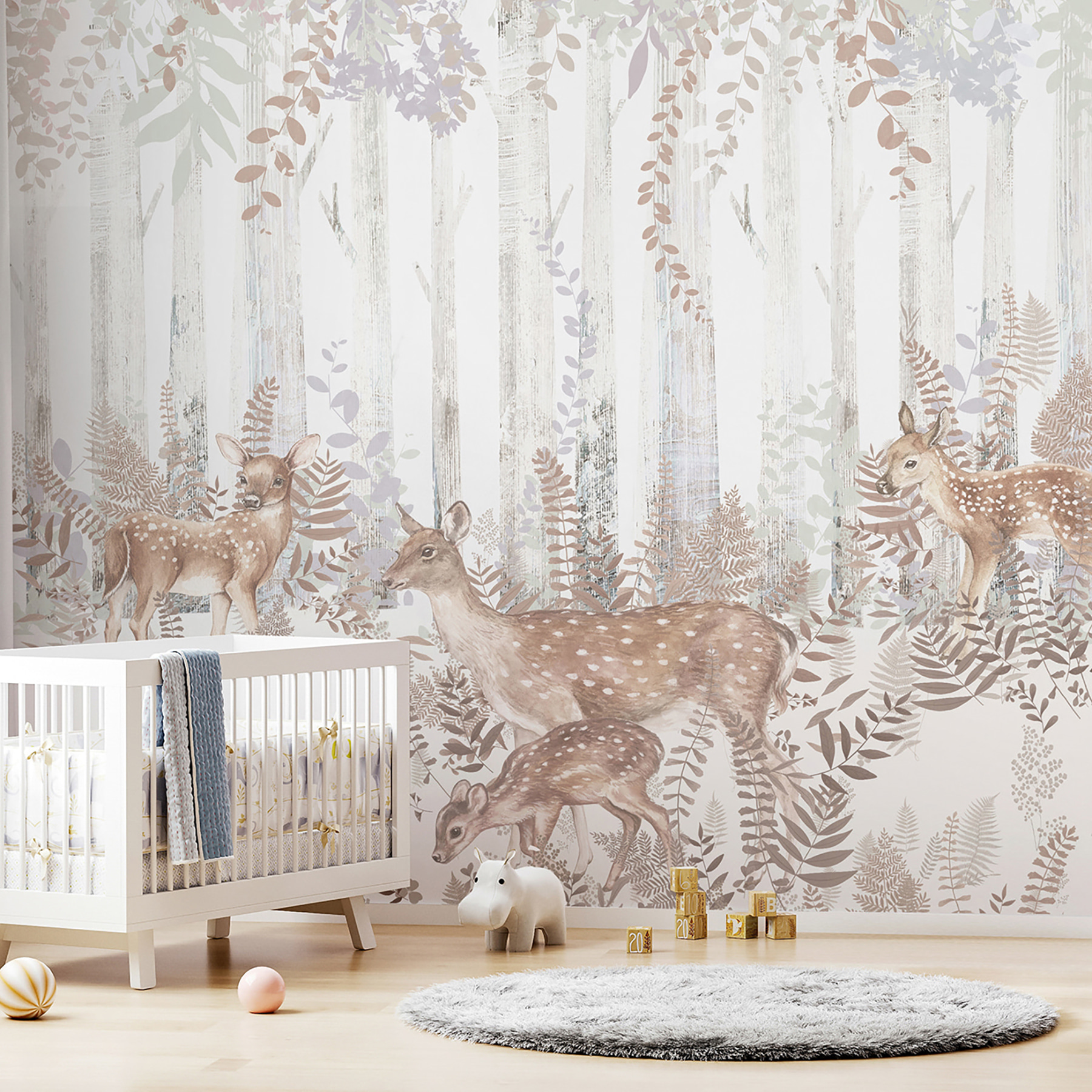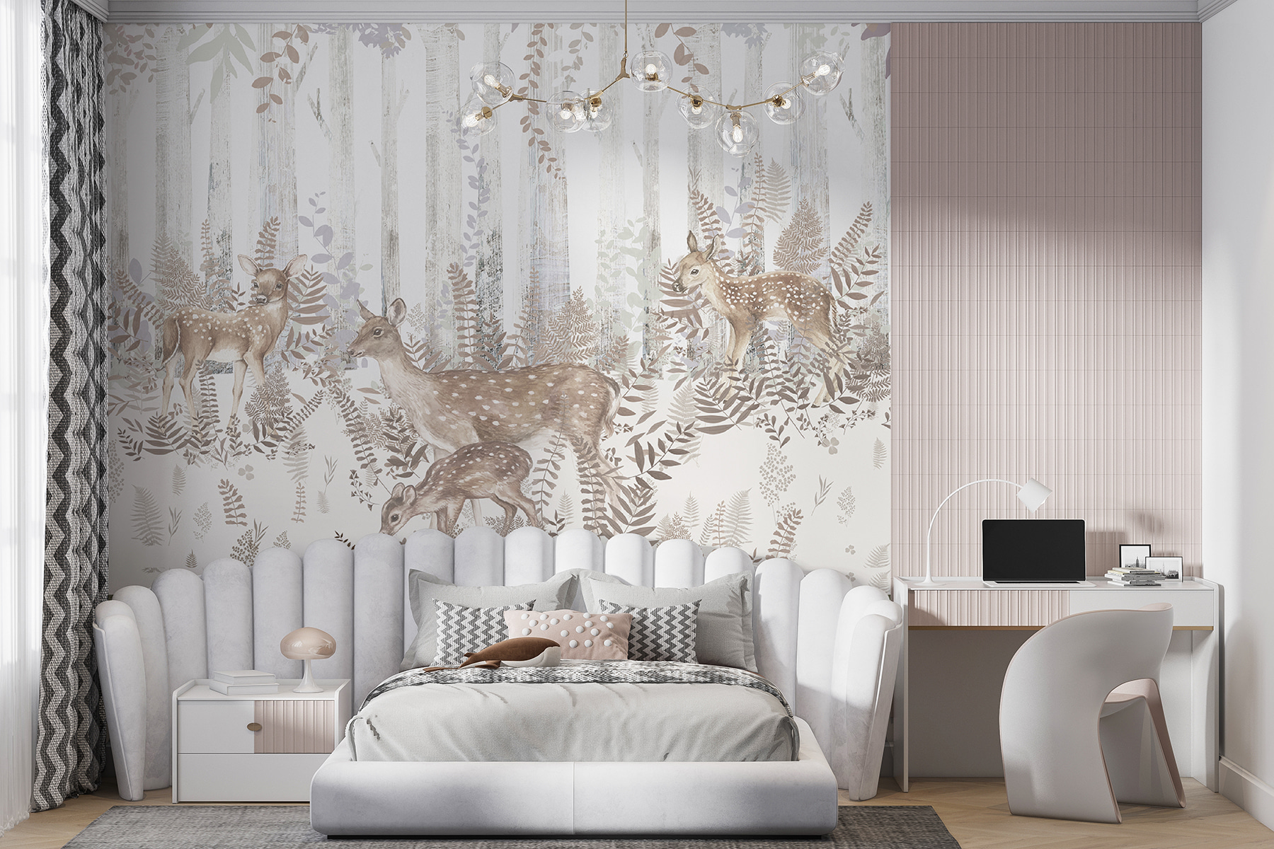 Já viu um mural com veados a brincar numa floresta? Este é simplesmente mágico – parece uma cena saída diretamente de um conto de fadas! Imagine o quarto do seu filho com esta estampa encantadora; as cores suaves e as texturas delicadas são perfeitas para dar asas à imaginação durante as brincadeiras ou as histórias para adormecer. Há qualquer coisa de calmante naqueles veados giros – parecem quase prontos a saltar da parede. Quer seja para o espaço de sonho da sua filha ou para o berçário tranquilo do seu bebé, este mural acrescenta um toque caprichoso, mas sereno. É mais do que decoração; é puro encanto da floresta!