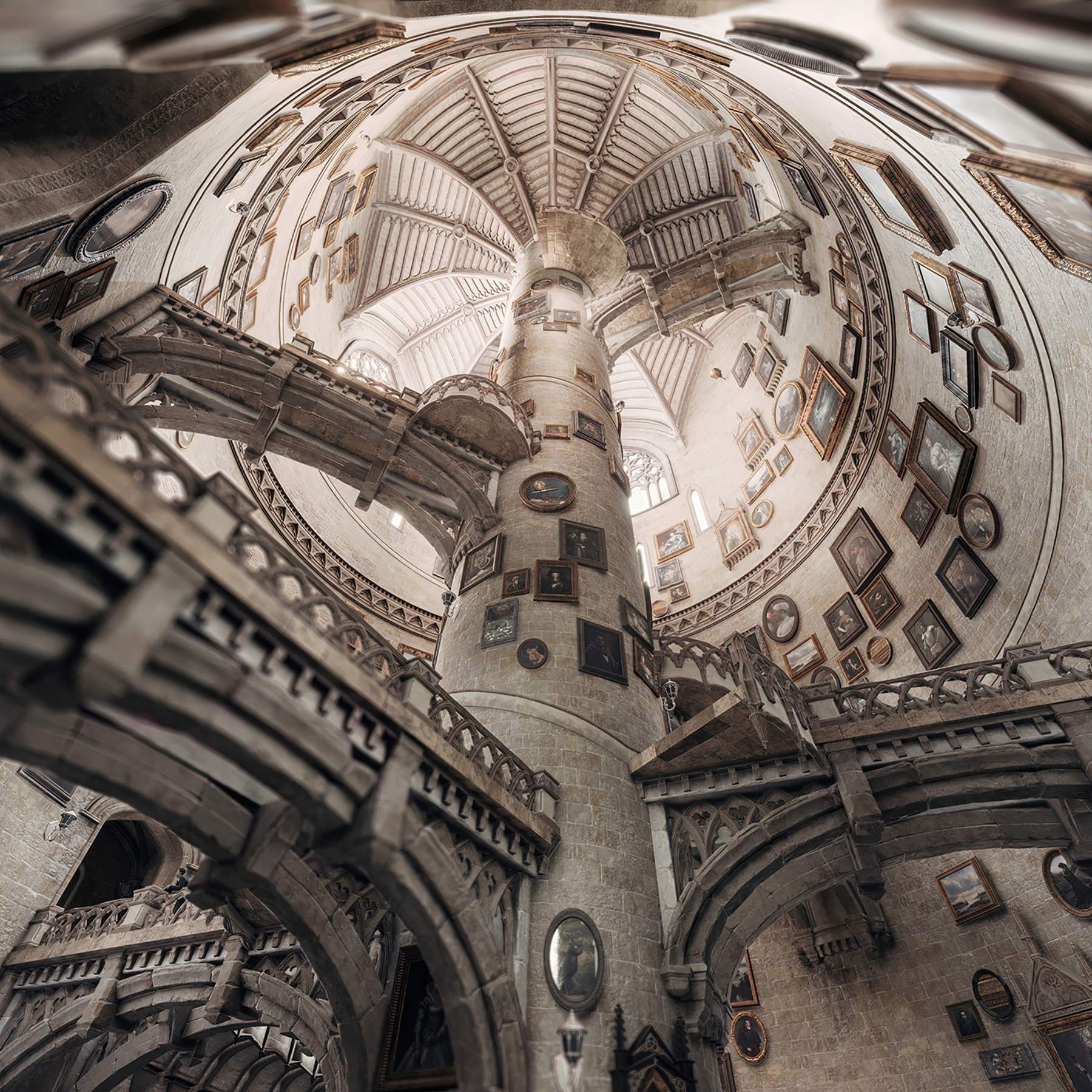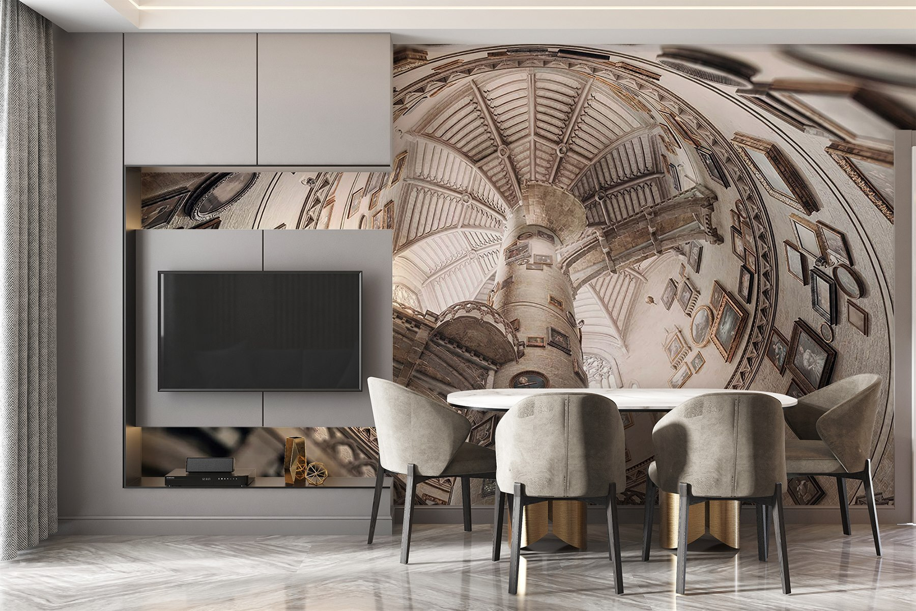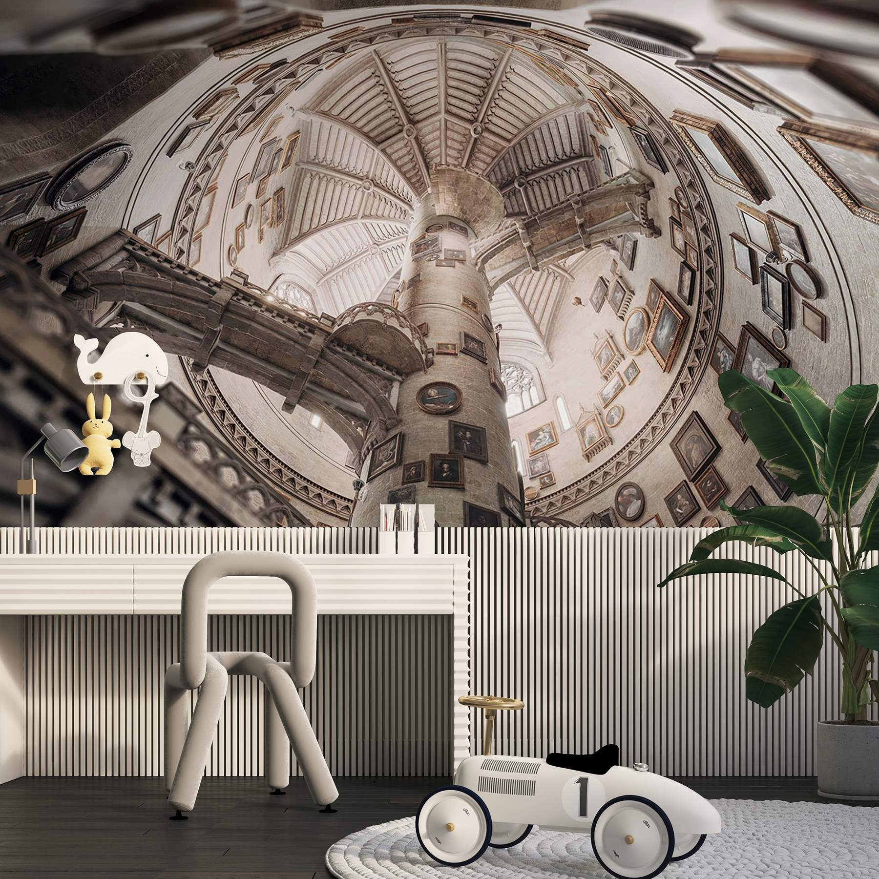 Entre num mundo caprichoso com o mural “Edifício circular com várias escadas”. Imagine-se a olhar para cima e a perder-se na espiral encantadora, onde cada escadaria conduz a novas descobertas. O charme dos retratos vintage nas paredes dá um toque peculiar, fazendo com que se sinta como se estivesse a viajar no tempo. Imagine-se a beber chá com os amigos, rodeado por este cenário deslumbrante – as discussões vão desde a arte até ao estranho vídeo do gato da semana passada! Este mural não é apenas uma decoração; é um convite para dar largas à imaginação e criar as suas próprias histórias. Perfeito para dar um toque de carácter a qualquer divisão, fará com que as suas paredes sejam definitivamente a estrela do espetáculo!