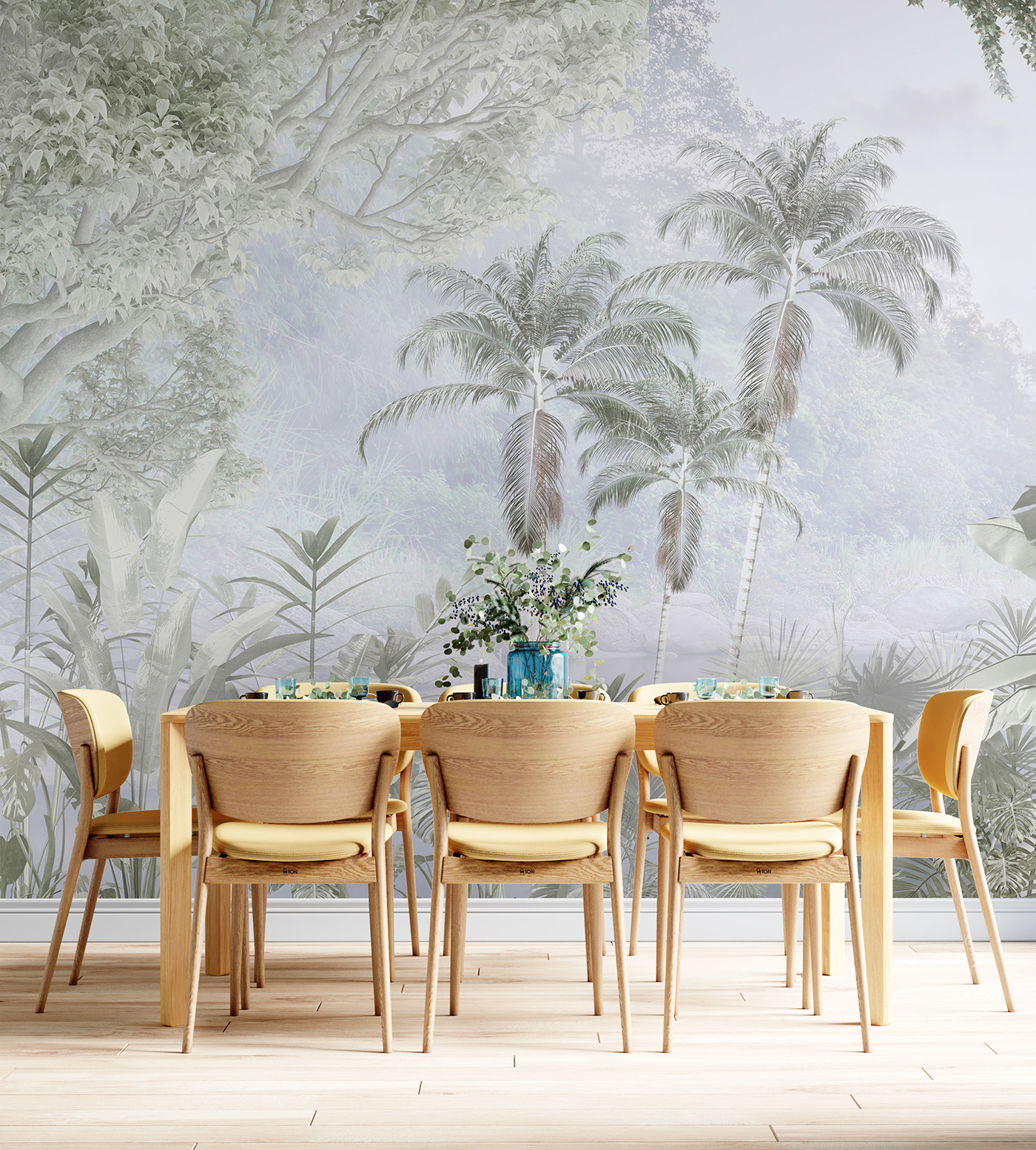 Transforme qualquer espaço numa escapadela arejada com este mural de parede que apresenta um grupo exuberante de palmeiras. É como trazer um pedaço do paraíso diretamente para a sua sala de estar – imagine beber café enquanto olha para aquelas palmeiras a balançar. As cores suaves acrescentam uma vibração calmante, perfeita para um retiro tranquilo. Talvez seja o pano de fundo para noites de cinema acolhedoras ou um local perfeito para aquelas chamadas intermináveis do Zoom – quem não gostaria de ter um paraíso tropical atrás de si? Este mural é basicamente umas férias para as quais não tem de fazer as malas. As suas paredes merecem um pouco de diversão, não merecem?