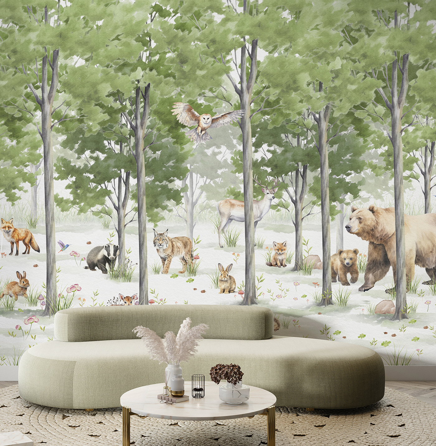 E os verdes suaves e os pormenores são simplesmente calmantes. Quer seja o suave farfalhar das folhas que imagina ou o movimento subtil dos animais, é certo que fará com que qualquer espaço se sinta um pouco mais mágico. Perfeito para quem sonha com a natureza, sem os mosquitos incómodos. Vá em frente, deixe as suas paredes contarem uma história.