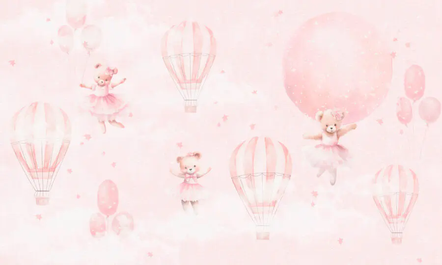Este mural de parede é como um sonho tornado realidade para o quarto de qualquer criança, especialmente se tiver um pequeno obcecado por ursos de peluche, tutus e tudo o que é adorável. Imagine isto: ursinhos de peluche com tutus de folhos a flutuar entre nuvens suaves e pastel e balões de ar quente – é como uma cena da mais doce história para adormecer. Consegue imaginar os olhos da sua filha a brilharem no momento em que vê isto? Magia total!