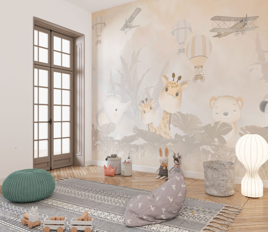 Alguma vez sentiu que o quarto dos seus filhos precisava de um toque de magia? Conheça o mural de parede “Hot Air Balloon in the Sky”, uma peça encantadora que é perfeita para qualquer pequeno sonhador. Imagine isto: balões de ar quente divertidos e animais encantadores a flutuar num céu suave e caprichoso. É como se um livro de histórias ganhasse vida mesmo na sua parede.