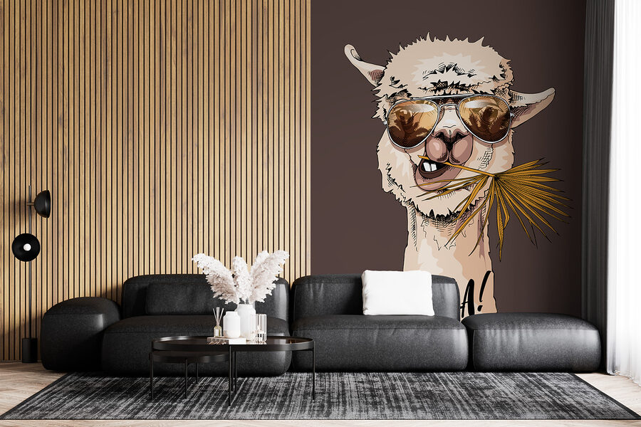 Alguma vez uma lhama lhe disse olá? Bem, agora é a sua oportunidade! Este mural de parede apresenta uma lhama super elegante a balançar as sombras – totalmente fria e pronta para trazer alguma diversão para o seu espaço. Imagine este tipo num quarto de criança ou numa área de jogos; acrescentará muita personalidade e uma pitada de capricho. Os seus convidados vão sorrir sempre que o virem. O fundo castanho suave mantém-no contemporâneo, combinando bem com montes de estilos de decoração. Quer seja para um amante de animais ou apenas para alguém que gosta de arte de parede única, este mural é uma forma infalível de iluminar qualquer divisão!