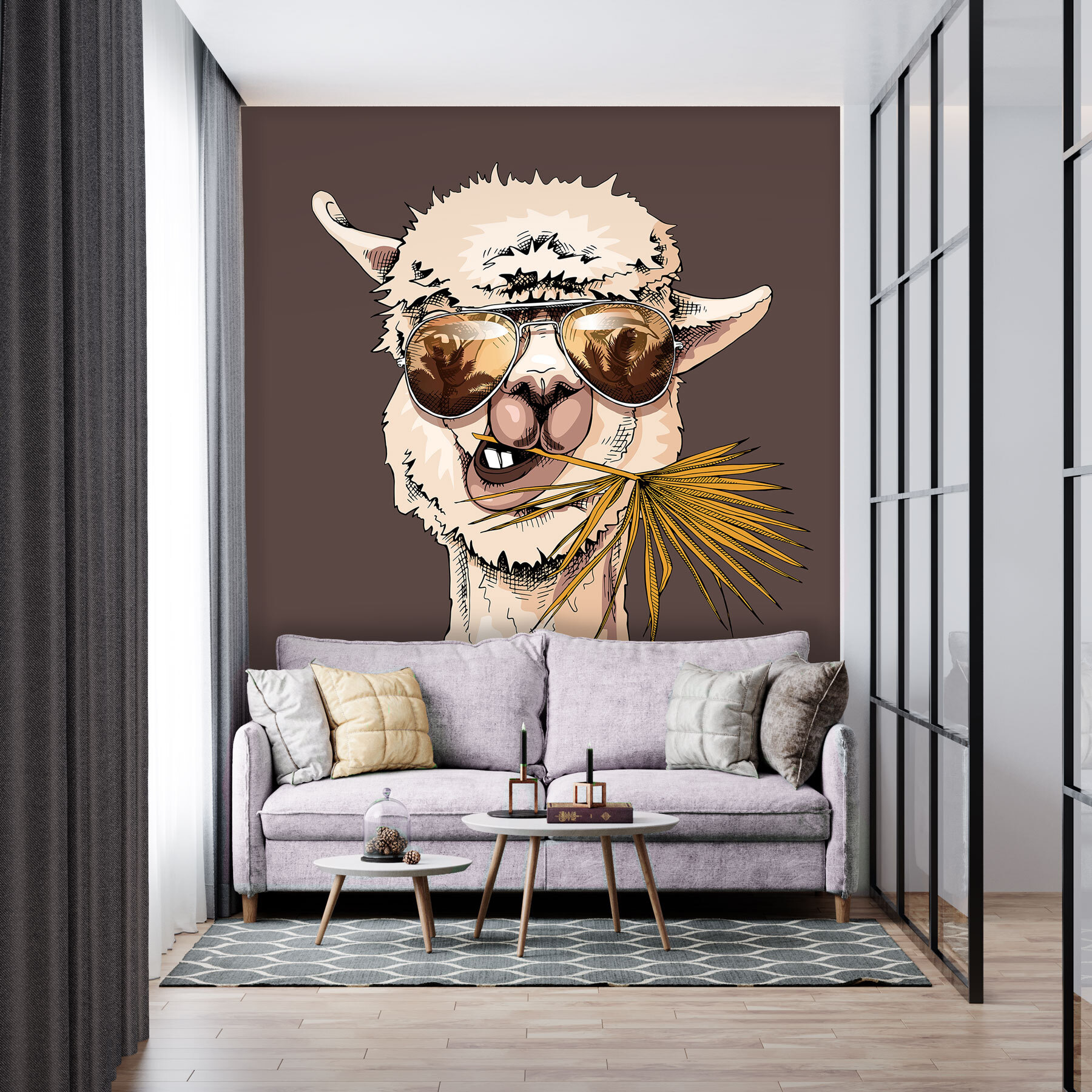 Alguma vez uma lhama lhe disse olá? Bem, agora é a sua oportunidade! Este mural de parede apresenta uma lhama super elegante a balançar as sombras – totalmente fria e pronta para trazer alguma diversão para o seu espaço. Imagine este tipo num quarto de criança ou numa área de jogos; acrescentará muita personalidade e uma pitada de capricho. Os seus convidados vão sorrir sempre que o virem. O fundo castanho suave mantém-no contemporâneo, combinando bem com montes de estilos de decoração. Quer seja para um amante de animais ou apenas para alguém que gosta de arte de parede única, este mural é uma forma infalível de iluminar qualquer divisão!