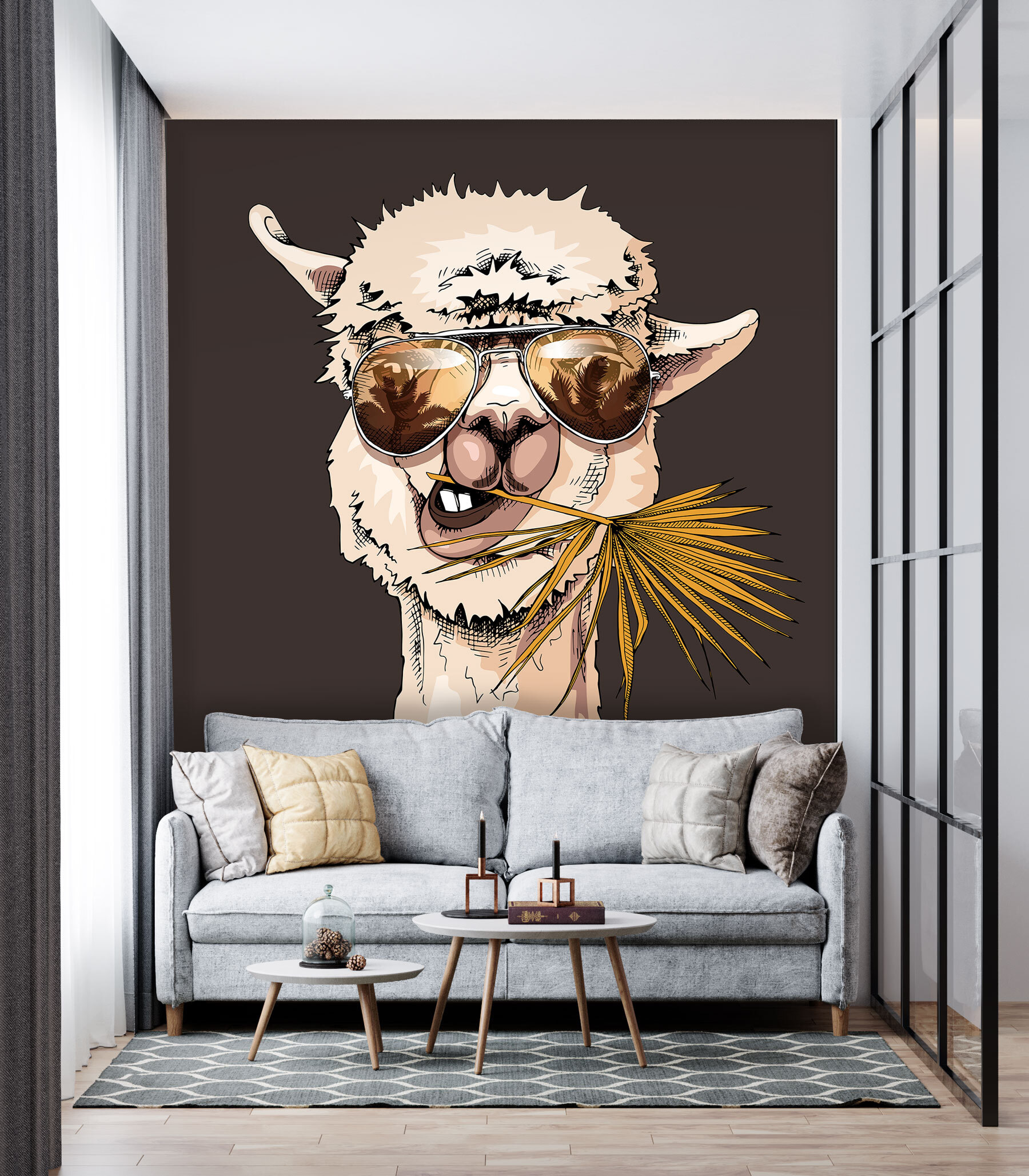 Veja este fabuloso mural de parede chamado “Chill Alpaca Greeting with Sunglasses!” Se alguma vez quiseste uma vibração peculiar e fixe na tua parede, é isto. Imagine esta alpaca fria, com os seus óculos de sol e um galho na boca, a cumprimentá-lo todos os dias – olá, humor instantâneo! Perfeito para quartos de crianças, mas, sinceramente, porque não na sala de estar? É como se a alpaca estivesse a dizer “Hola!” de cada vez que passa por ela, lembrando-o de ter calma. Dê a este amigo peludo a oportunidade de dar um toque divertido à sua decoração com o seu charme ultra-relaxado.