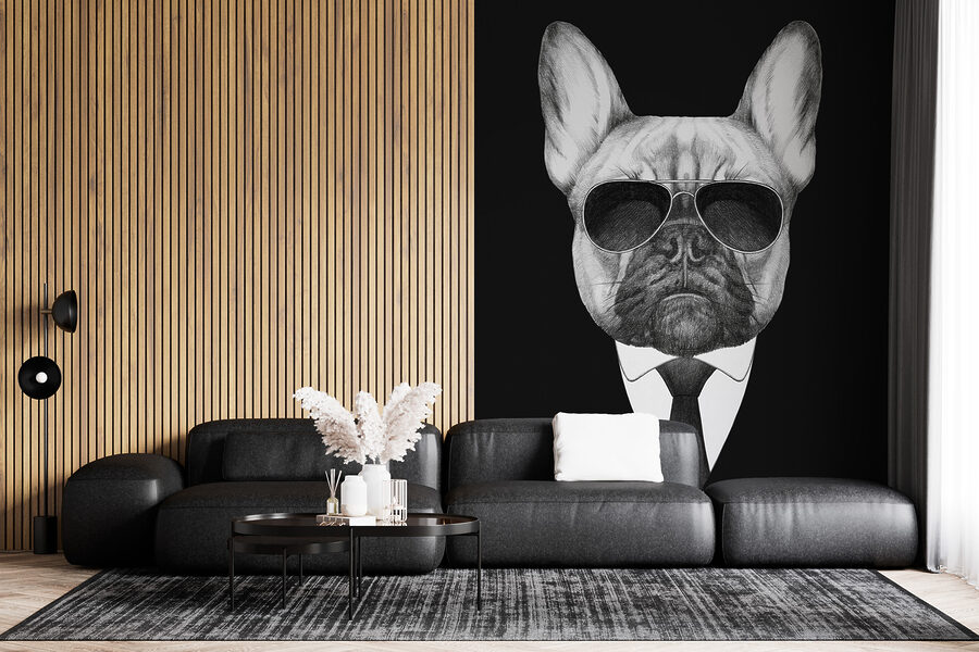Já pensou em dar um toque peculiar ao seu espaço? Este mural de parede de um cão com óculos de sol pode ser o ideal. Imagine: um canto chique da sala de estar, o berçário de um bebé ou mesmo a área de estar de um adolescente, instantaneamente transformados com um toque de frescura. A expressão séria do cão, combinada com os óculos de sol, cria um contraste muito divertido – é como se ele estivesse pronto para uma missão secreta. Os traços finos a lápis conferem-lhe uma vibração contemporânea, enquanto toda a imagem grita “único”. Imagine as conversas que vai desencadear! Uma vitória definitiva para quem quer dar personalidade às suas paredes. Vista essas paredes simples com um pouco de estilo canino!