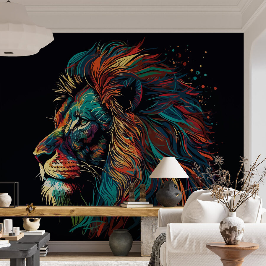 Num cenário elegante, o mural destaca-se e cria um ponto focal impressionante. Quer se trate de acrescentar capricho a um quarto de criança ou de uma afirmação ousada num espaço de vida contemporâneo, este leão colorido chama a atenção. Transforme paredes aborrecidas e veja como todos os que entram não conseguem deixar de sorrir. Quem não gostaria de ter um companheiro brincalhão e feroz como este?