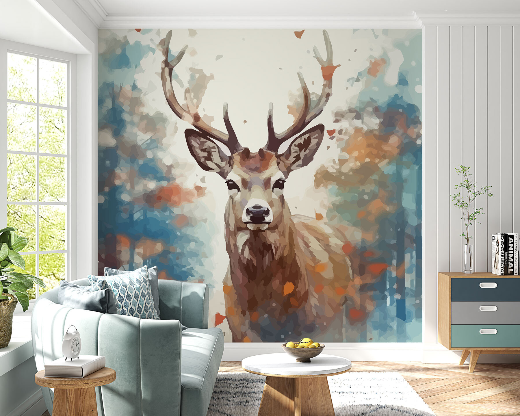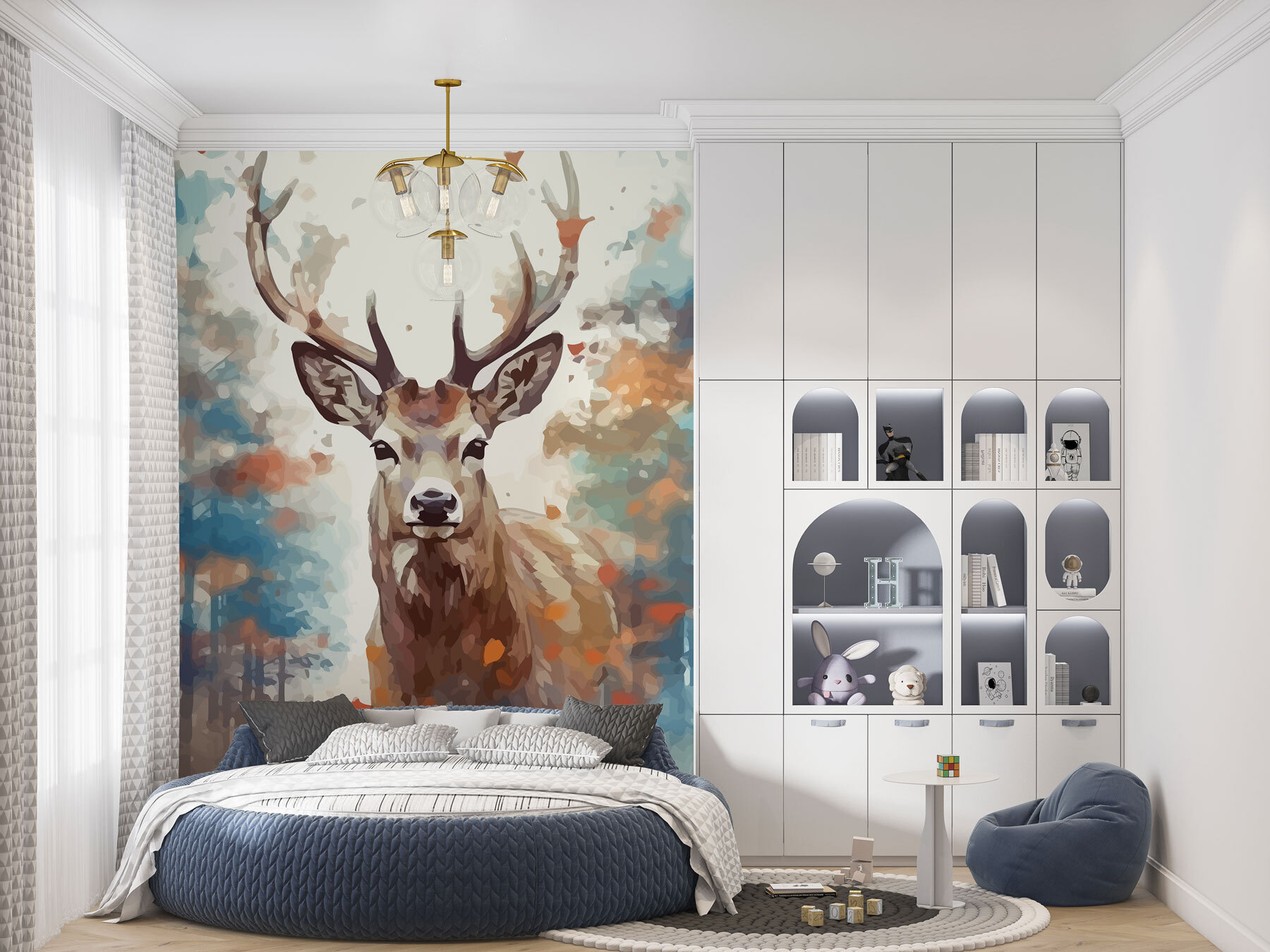 Imagine entrar numa sala e ser recebido por um veado majestoso com estes chifres deslumbrantes. Este mural de parede é como ver a natureza através de uma lente sonhadora e colorida – do tipo que o faz querer parar e respirar por um segundo. Perfeito para quartos de crianças, salas de estar ou para qualquer sítio onde se queira sentir um pouco mais ligado à natureza. A mistura de tons quentes e frios? É como se a floresta no outono tivesse decidido fazer uma visita. Prepare-se para os amigos perguntarem: “Onde arranjaste isso?” E a sério, este veado? Tem uma presença séria.