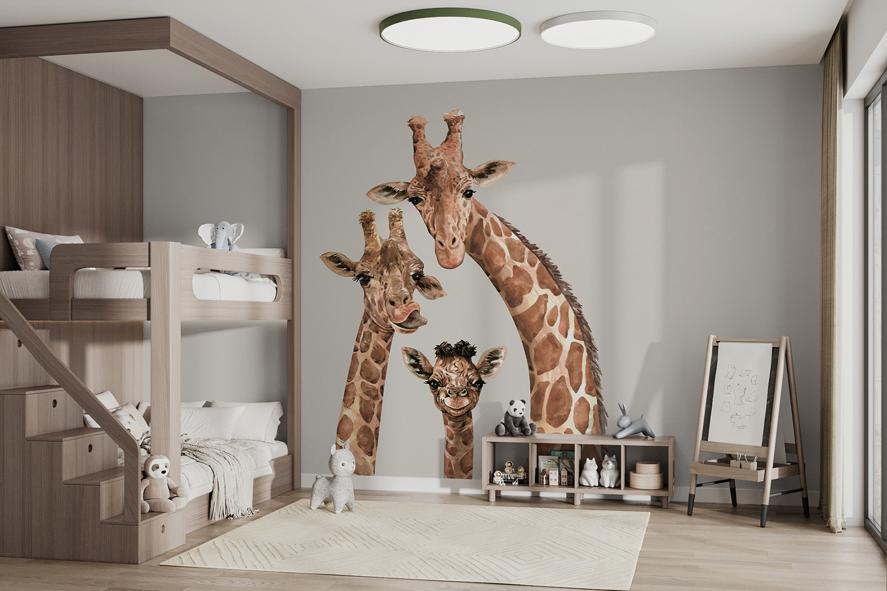 Aqui está um pouco de diversão e capricho para as suas paredes – os nossos “Murais de parede Grupo de girafas com as cabeças juntas” darão um toque de personalidade a qualquer divisão. Basta olhar para aquelas caras adoráveis e curiosas! Quer esteja a preparar o quarto de uma criança ou apenas adore um pouco de decoração divertida, estas girafas vão certamente fazê-lo sorrir sempre que as vir.