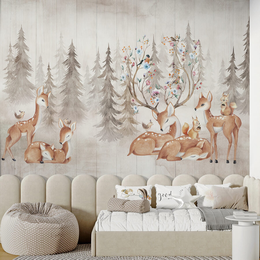 Os tons suaves e terrosos misturam-se na perfeição, dando uma vibração calorosa e inspirada na natureza sem sobrecarregar o espaço. Os pormenores intrincados das flores e o sereno veado aninhado podem fazer com que qualquer divisão se sinta como um refúgio sereno. Quase se consegue ouvir o suave farfalhar das árvores e o leve chilrear dos pássaros.