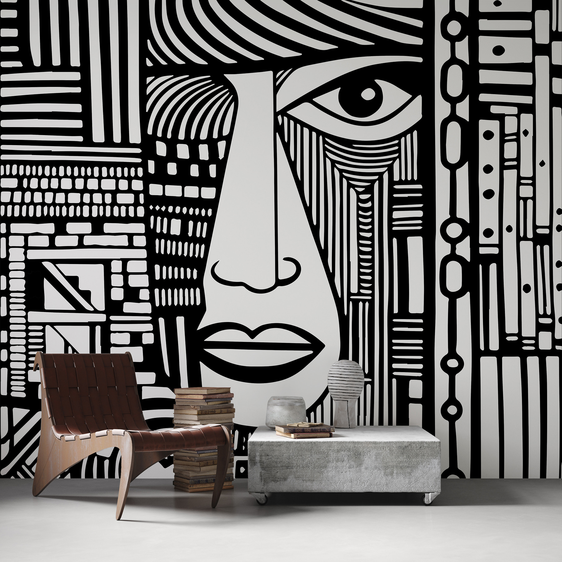 Alguma vez quis arte que o agarrasse pelos ombros e o fizesse prestar atenção? Então este mural “Desenho a Preto e Branco de um Rosto” é para si. É perfeito para aqueles que adoram papéis de parede de designer, mas também desejam algo um pouco… ousado. As linhas arrojadas e os contrastes marcantes atraem-no – é quase como se o rosto estivesse a ter uma conversa profunda consigo. Imagine entrar no seu quarto depois de um longo dia e sentir-se instantaneamente um pouco mais sofisticado, como se tivesse entrado numa galeria de arte moderna. Este mural acrescenta curiosidade e uma pitada de mistério a qualquer espaço. Além disso, é simplesmente fixe, certo?