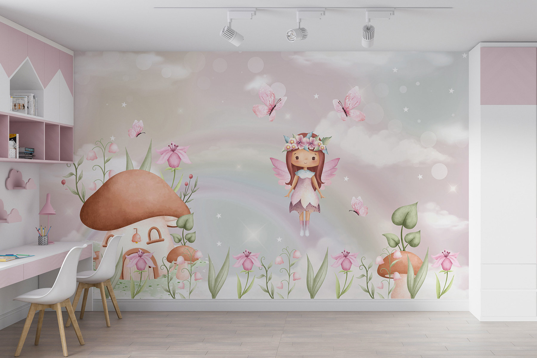 Transforme o espaço de um pequenote com este encantador mural de parede com uma encantadora fada a dançar entre flores e borboletas. Imagine só: a luz do sol a entrar, lançando sombras suaves sobre pétalas divertidas e uma acolhedora casa de cogumelos que desperta a imaginação. As crianças vão adorar perder-se nesta cena mágica, sonhando com histórias de fadas e aventuras na floresta. É como dar vida a um conto de fadas diretamente na parede – perfeito para mentes curiosas ou talvez até para um recanto de leitura acolhedor. Quem é que não sorriria ao passar por este capricho? Deixe que a magia se desenrole!