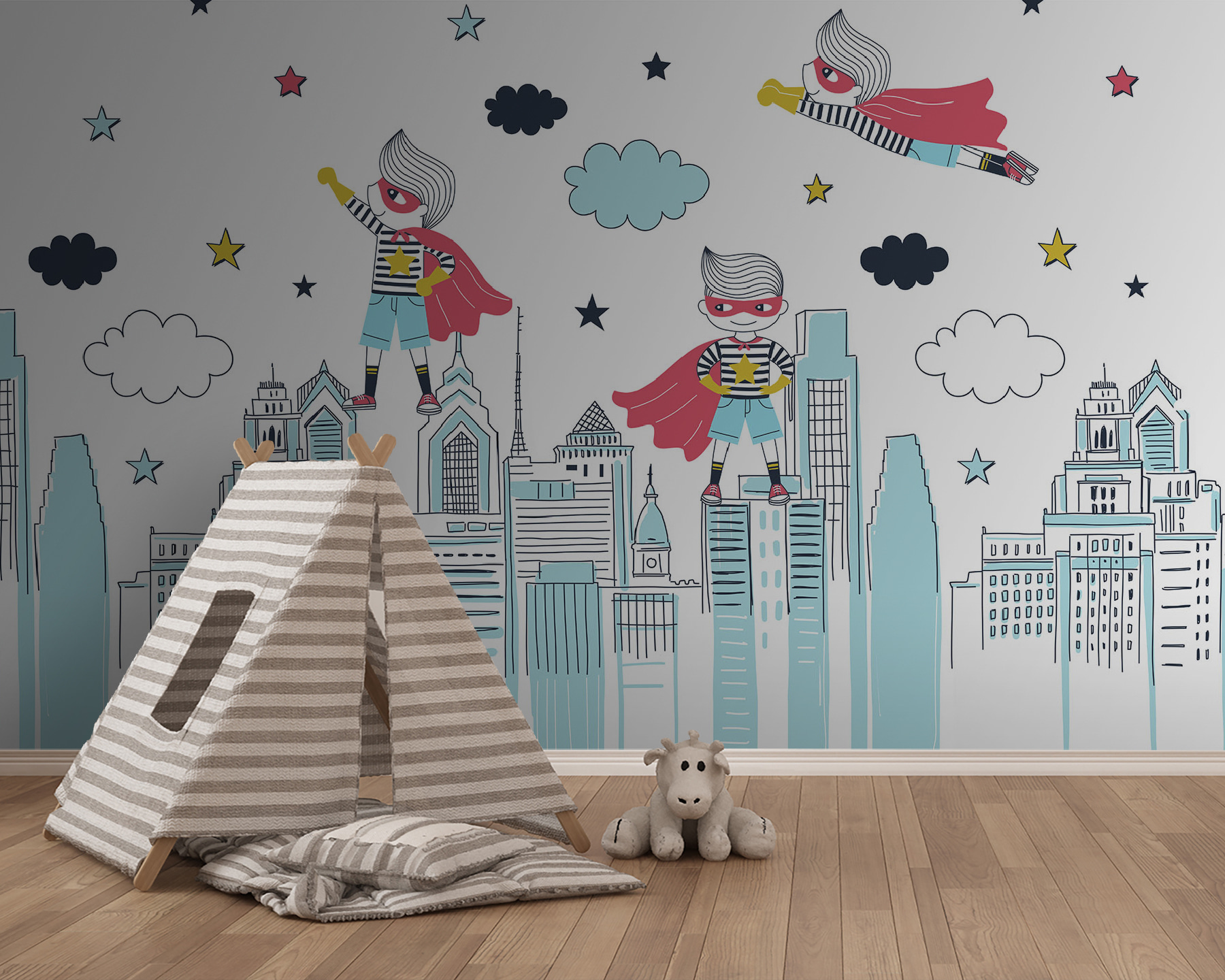 Transforme o quarto de uma criança numa aventura vibrante com este mural de parede com um super-herói brincalhão. Num cenário brilhante, uma figura de capa sobrevoa uma paisagem urbana, rodeada por nuvens extravagantes e estrelas cintilantes. Não se trata apenas de decoração; desperta a imaginação e sonhos de façanhas heróicas! Perfeito para os mais pequenos, este mural pode inspirar histórias épicas para adormecer e inúmeras horas de brincadeira. Quer seja uma surpresa para um aniversário ou apenas uma simples atualização, este mural pode fazer com que o quarto se sinta como uma fuga divertida. Quem não gostaria de saltar para um mundo de aventura sempre que entra no quarto?