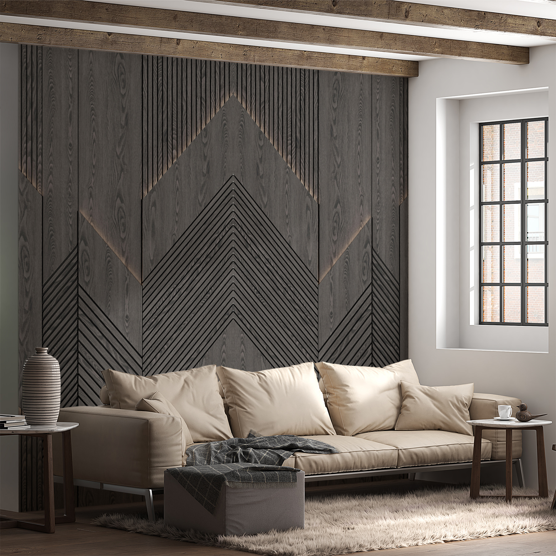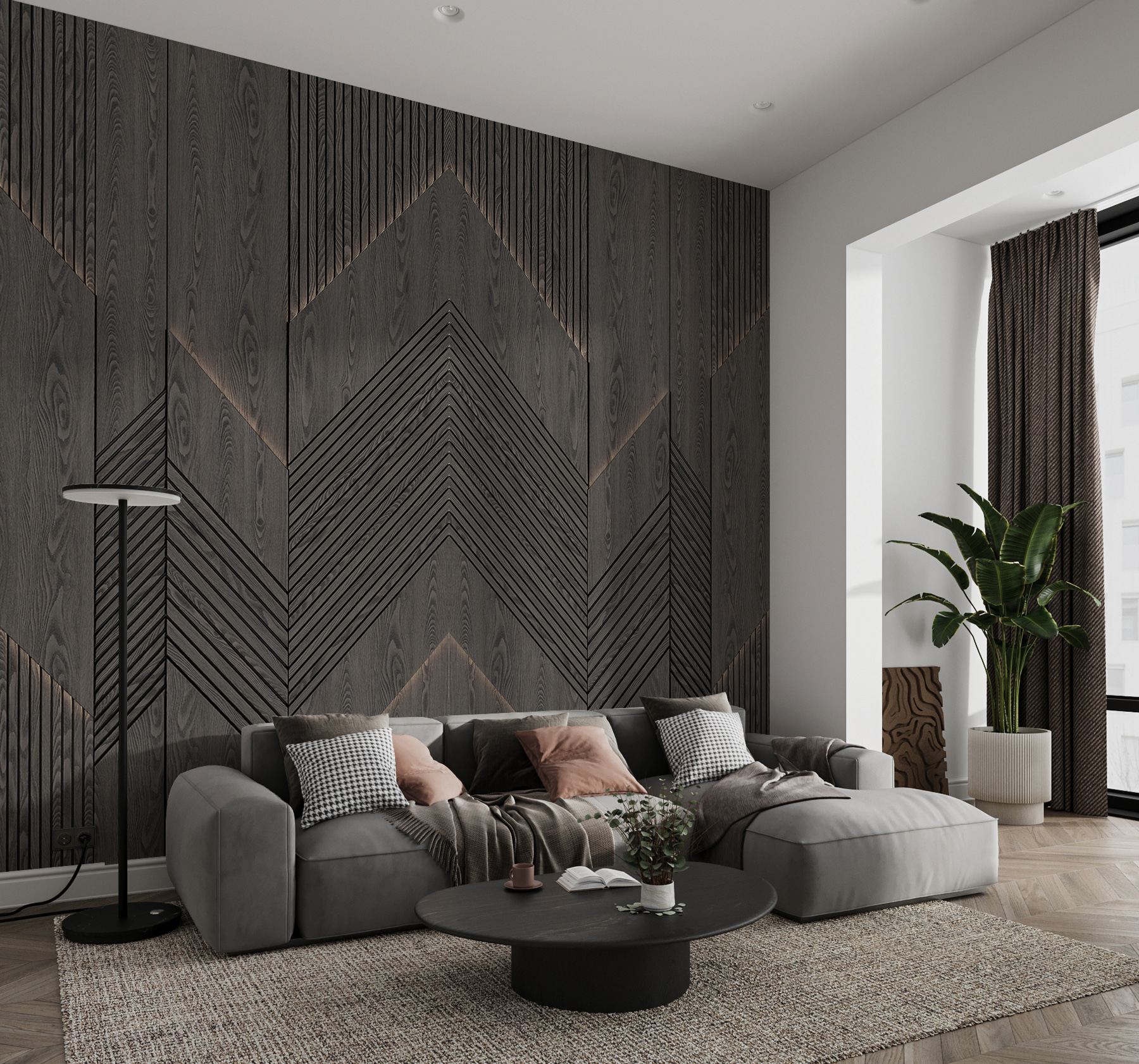 Imagine que está a entrar numa sala e BAM, um mural de padrões geométricos mesmo ali na parede. Este não é um design de parede qualquer; tem aquele toque acolhedor da madeira, mas com algumas vibrações abstractas muito fixes. As linhas e formas quase nos fazem sentir como se o quarto nos estivesse a dar um grande e elegante abraço. Perfeito para quem gosta daquelas noites com velas e um bom livro. É como se o mural estivesse a sussurrar segredos de elegância e conforto. Na verdade, faz-me lembrar aqueles cafés da moda onde só apetece sentar, bebericar e nunca mais sair. É um fator de mudança para qualquer espaço!