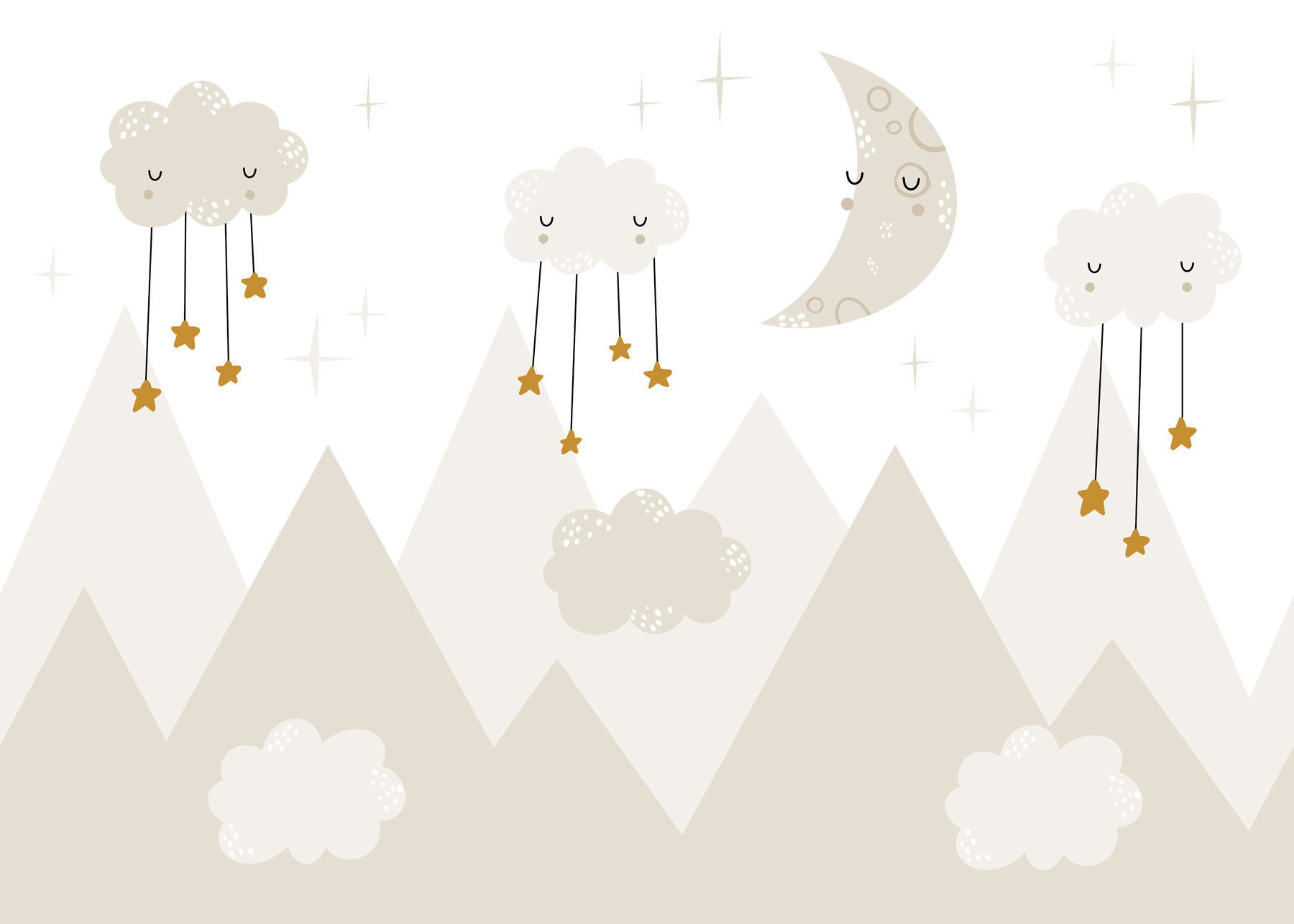 Imagine isto: um mural de céu noturno de sonho com uma lua adormecida e nuvens aconchegantes penduradas com estrelas, brilhando suavemente sobre os picos das montanhas. É como entrar numa história de embalar extravagante! Perfeito para um quarto de bebé ou de criança, este mural combina imaginação e conforto – estimulando a criatividade dos mais pequenos enquanto cria um ambiente relaxante. Pense em todos esses doces sonhos e risadas na hora de dormir. Além disso, quem não gostaria de adormecer debaixo de uma cena tão deliciosa e calmante? É mais do que uma simples decoração – é uma pequena aventura, mesmo na parede.