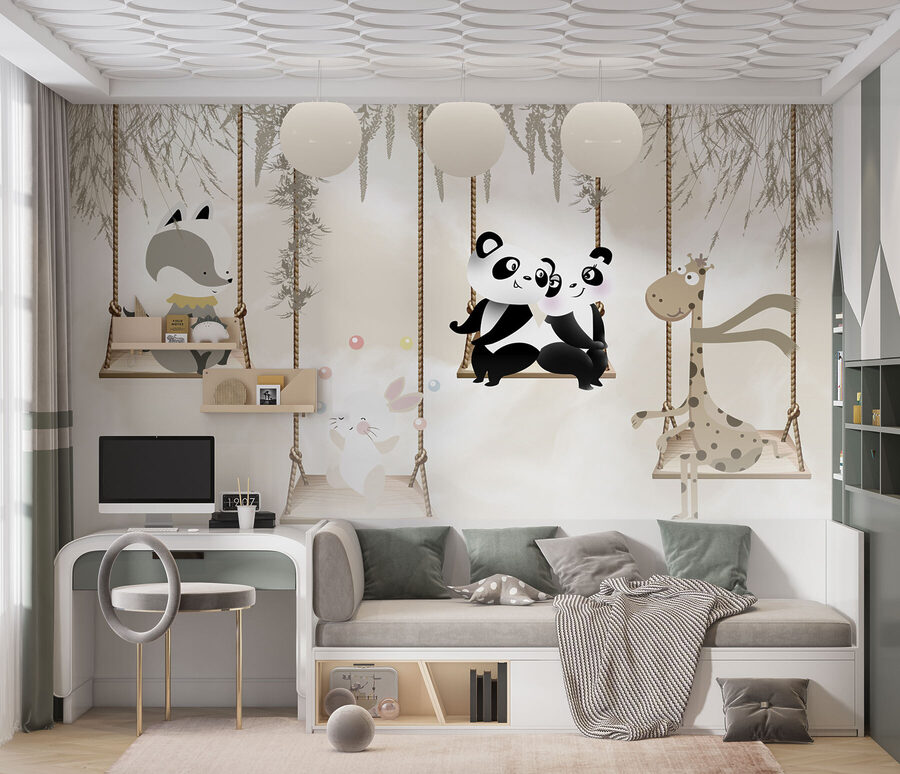 Não consegue encontrar o toque perfeito para o quarto do seu filho? Imagine isto: dois pandas adoráveis, balançando suavemente lado a lado, trazendo uma vibração acolhedora e caprichosa ao espaço. Este mural de parede, “Casal de pandas sentados num baloiço”, preenche todos os requisitos certos – giro, encantador e apenas um toque de comoção. Imagine deixar o seu filho no berço ou na cama, onde ele vai sonhar com aventuras na floresta com os seus novos amigos pandas. Não se trata apenas de decoração; é uma mini-fuga para um mundo de mimos e diversão. Ah, e também funciona muito bem em salas de jogos! Prepare-se para alguns “awws” extra na hora de dormir.