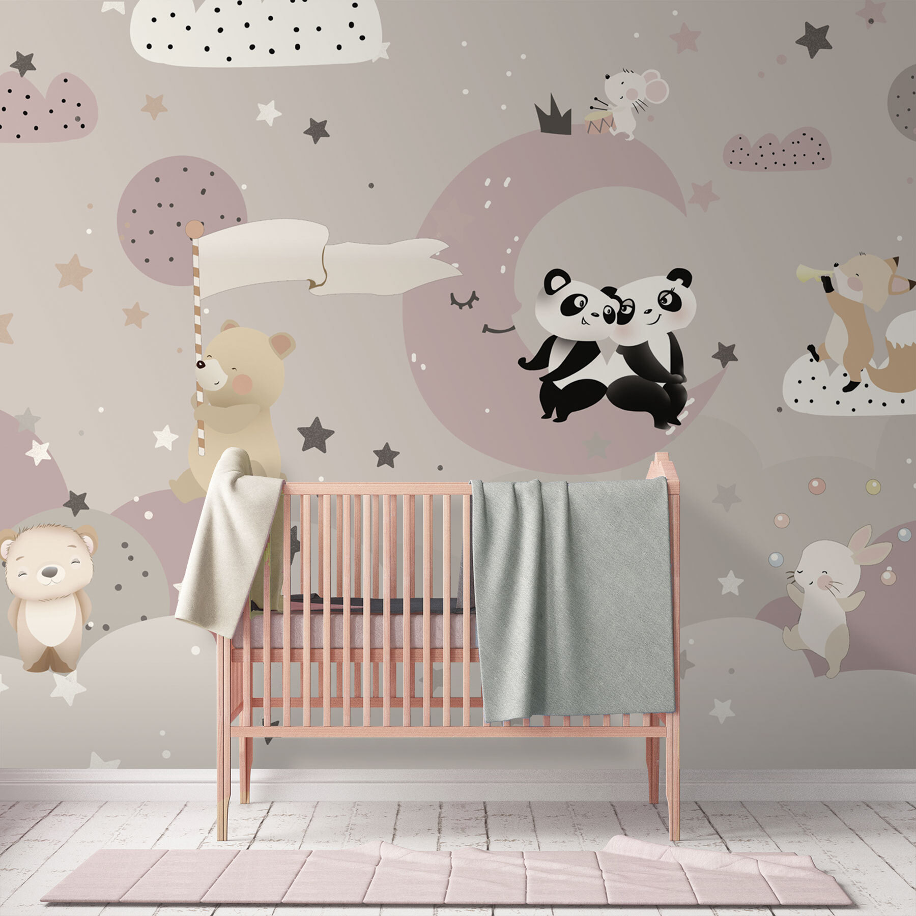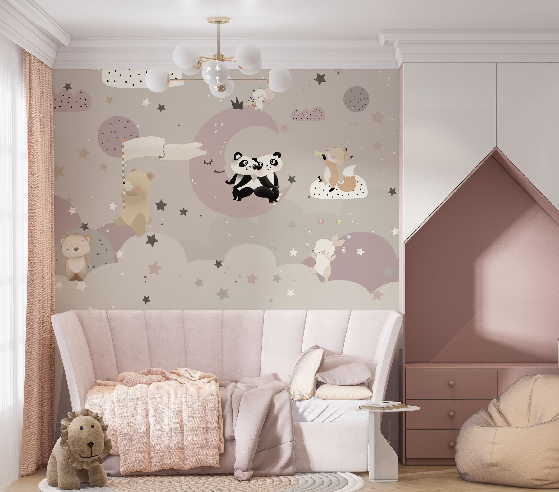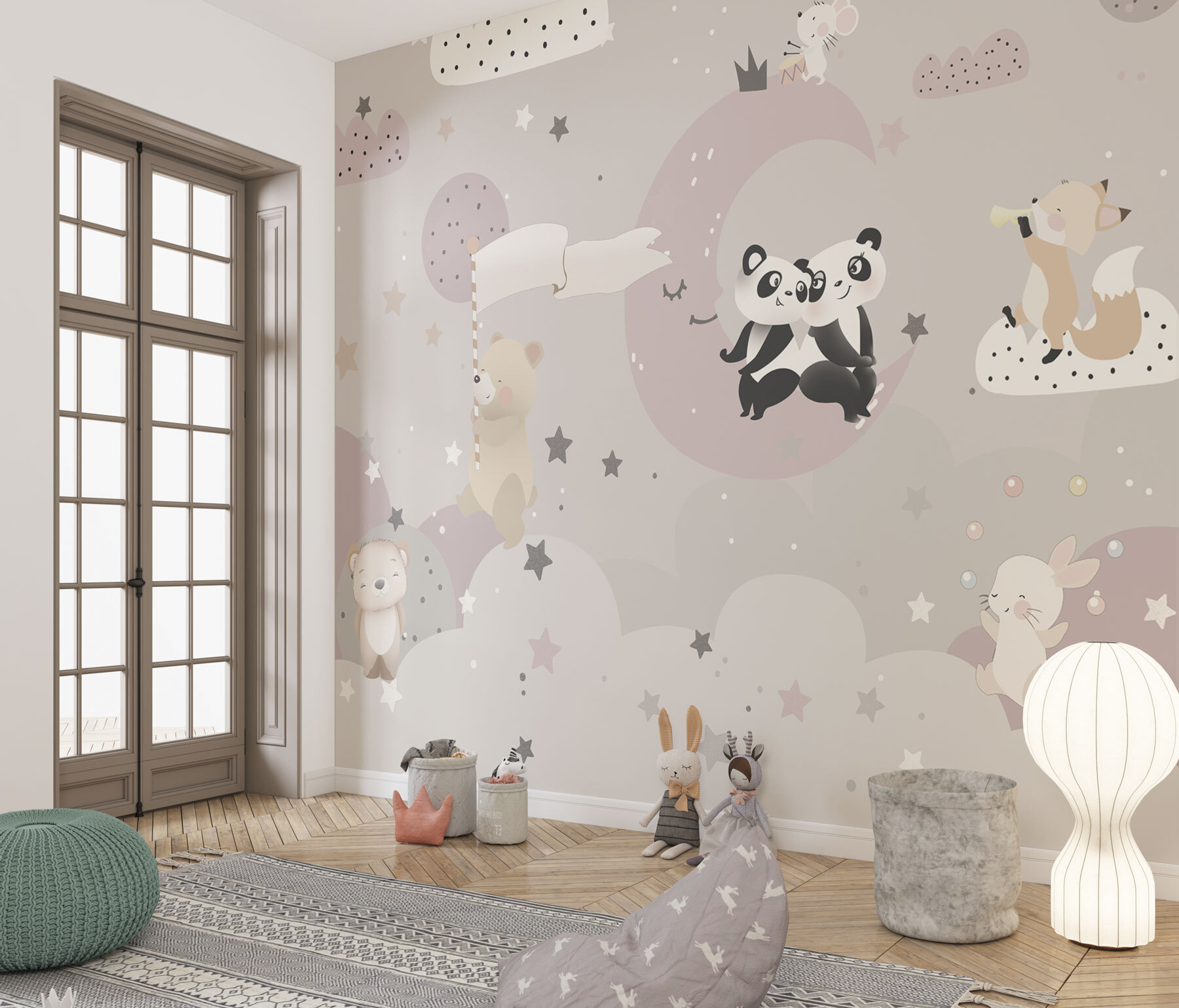 Quer dar um toque de capricho ao quarto do seu filho? Este “Mural de parede desenho animado de um urso” é o ideal! Imagine um céu noturno aconchegante salpicado de estrelas em tons pastel e adoráveis amigos ursos – é um encanto instantâneo. Perfeito para berçários ou salas de jogos, os tons suaves e as personagens encantadoras deste mural criam uma atmosfera de sonho e calma. Imagine o seu filho a acordar com um urso a acenar uma bandeira, a rir-se dos pandas ou a ver uma raposa a tocar uma música. É uma parede que conta uma história, convidando a uma imaginação sem fim e a sonhos divertidos. Além disso, é um início de conversa divertido – os seus amigos vão perguntar-lhe onde encontrou uma peça tão encantadora. Confie em mim, não é apenas um mural de parede, é todo um ambiente para o espaço do seu filho.