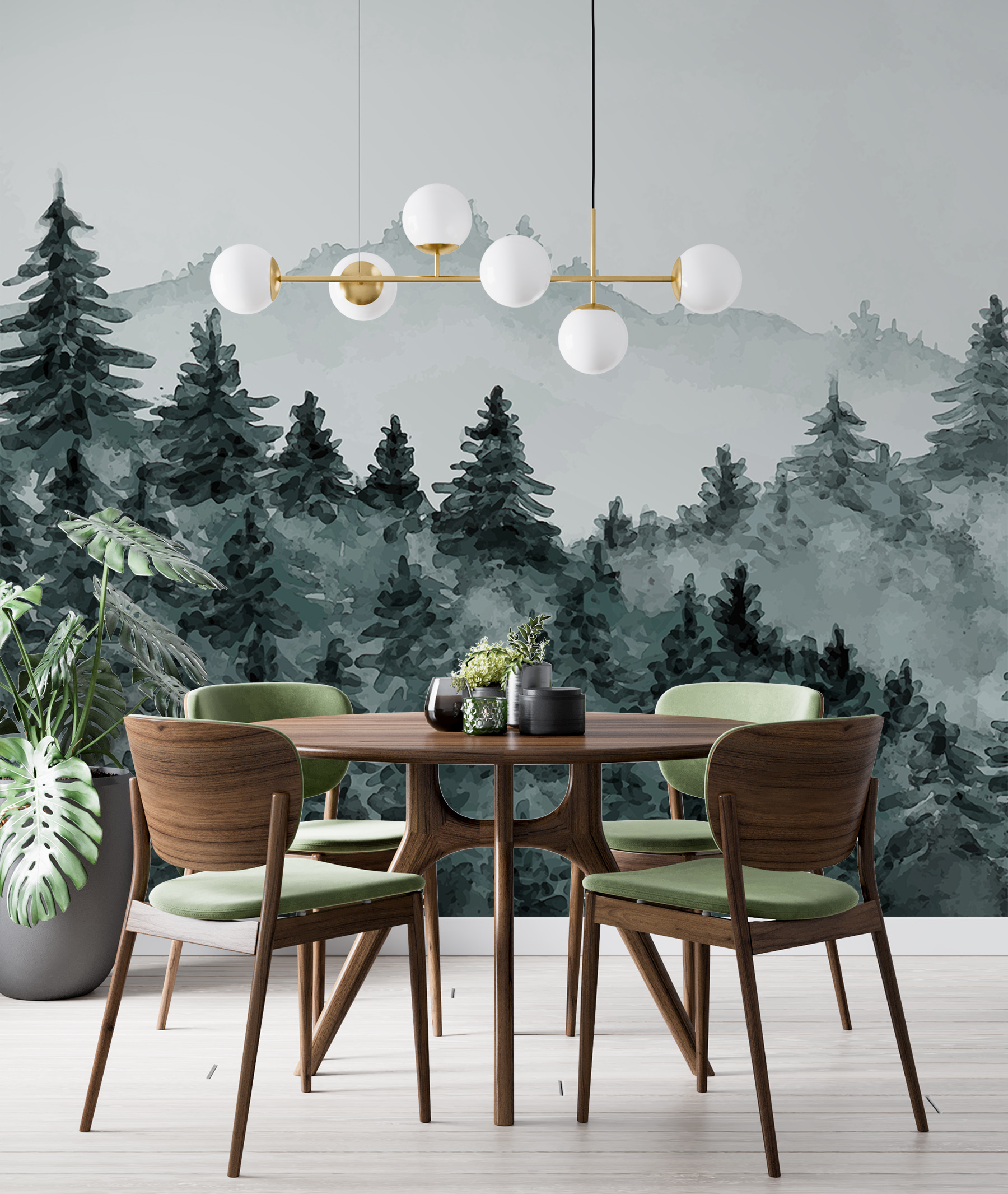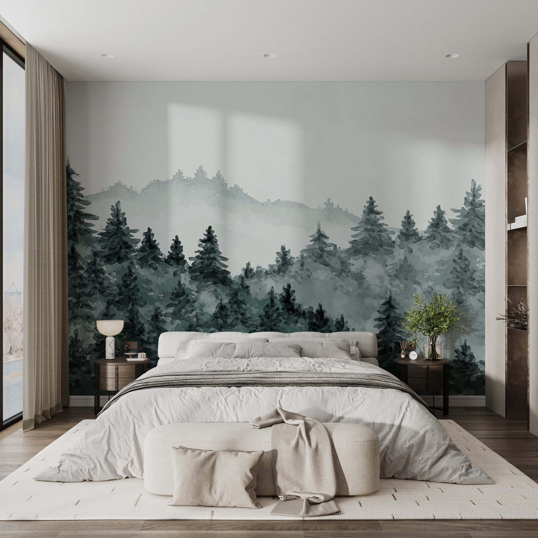 Imagine entrar na sua sala de estar e BAM! – está subitamente numa floresta calma e enevoada. Este mural “Misty Forest with Evergreen Trees” é como trazer uma floresta serena diretamente para as suas paredes. Perfeito para aqueles momentos em que quer fugir da azáfama sem sair do seu espaço acolhedor. Tem esta vibração de sonho, aguarela, que é super calmante. Imagine o seu café da manhã com este cenário enevoado – é como um mini retiro! Ideal para qualquer espaço que precise de um toque de magia da natureza, a vibração deste mural tem tudo a ver com paz e tranquilidade.