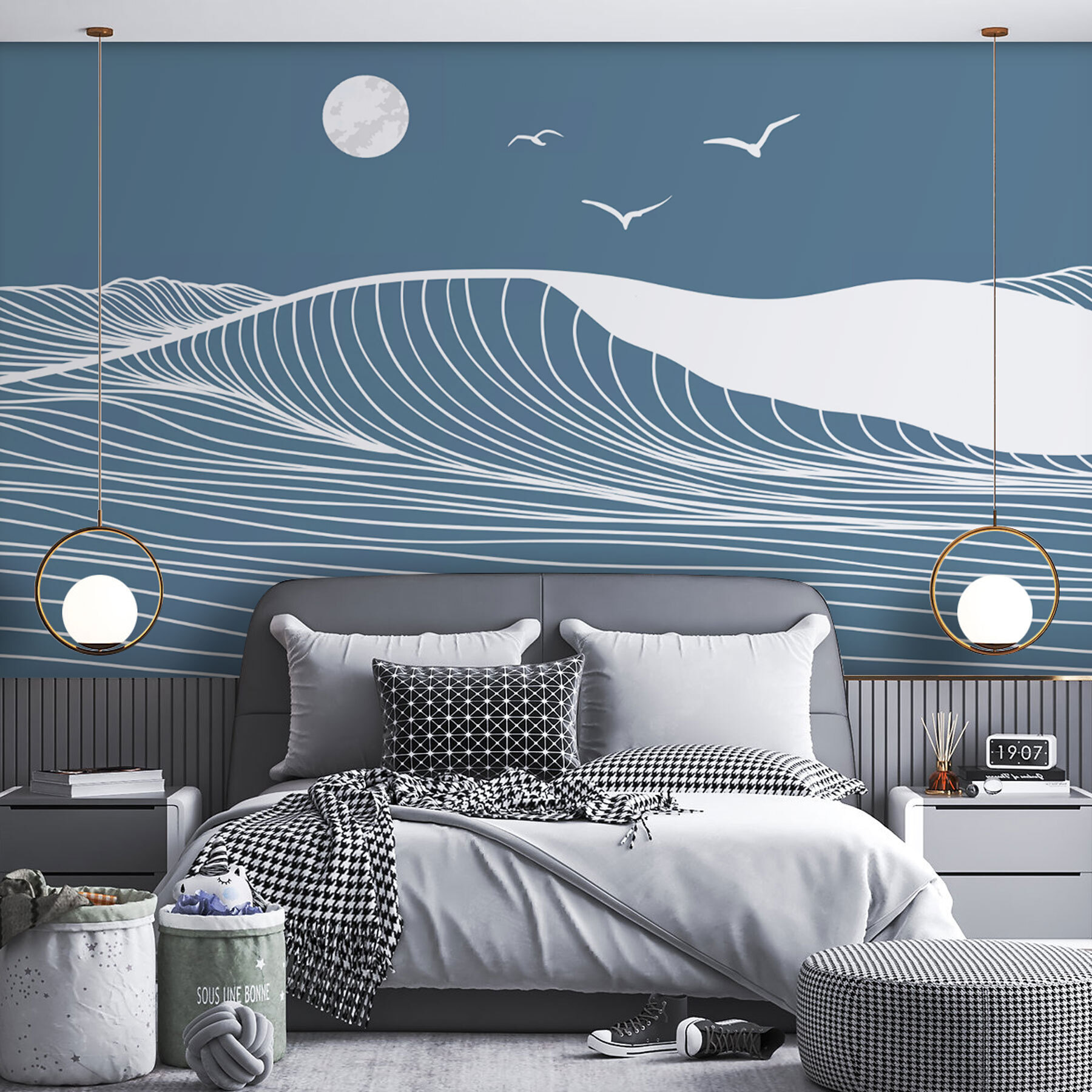 O mural que encomendámos é espantoso! As cores são lindas, e a qualidade é de primeira qualidade. Foi fácil de instalar, e tem um aspeto fantástico no nosso quarto. Recomendo vivamente!