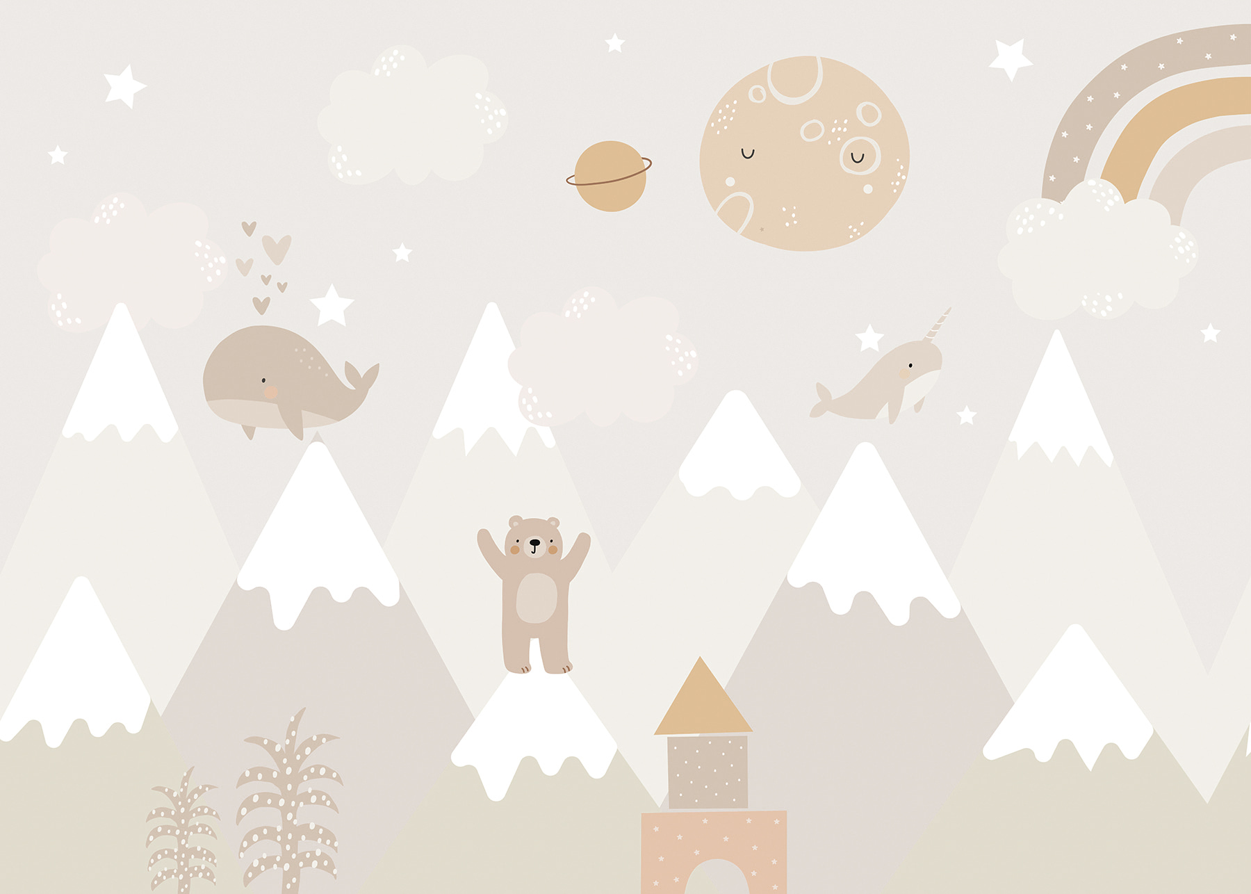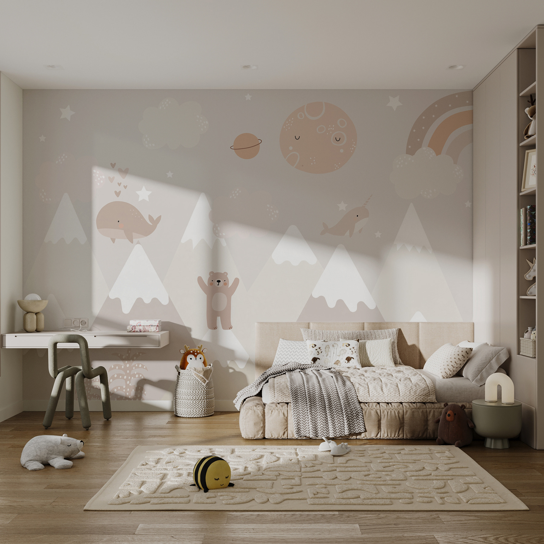 Este encantador mural de parede “Cartoon Whale with Stars” é como entrar num sonho caprichoso! Perfeito para o quarto de uma criança, berçário, ou qualquer espaço lúdico, traz uma vibração aconchegante e mágica que é ao mesmo tempo calmante e divertida. Imagine os seus filhos a adormecerem sob uma lua sorridente, com baleias e narvais simpáticos a flutuarem entre as estrelas – pura magia da história para adormecer! Os tons pastel suaves e as personagens doces criam uma atmosfera serena e convidativa, tornando-a num cenário maravilhoso para os momentos de convívio ou de brincadeira. Abrace o encanto e deixe que esta cena encantadora desperte alegria e criatividade no seu espaço!