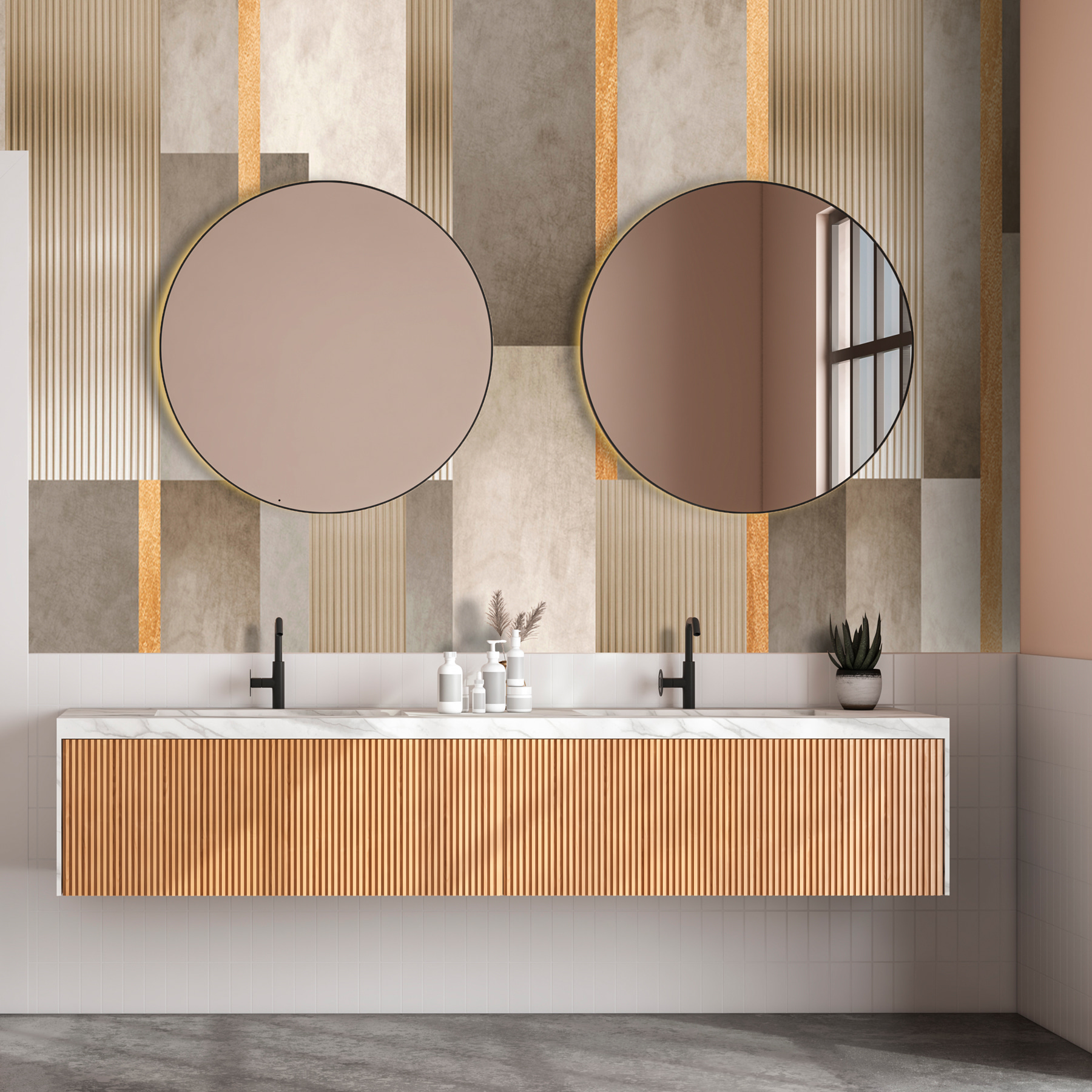 A escolha do material depende da divisão em que planeia utilizar o papel de parede. Para quartos de crianças e quartos de dormir, recomenda-se o material Economy para uma melhor circulação do ar. Para casas de banho e cozinhas, o Vinil Premium é a escolha ideal devido à sua camada extra de verniz, que repele a humidade, a sujidade e é fácil de limpar. Para outras divisões, sugerimos o Vinil ou o Vinil Premium, uma vez que oferecem uma combinação de elevada resistência ao desgaste e saturação de cores vivas.