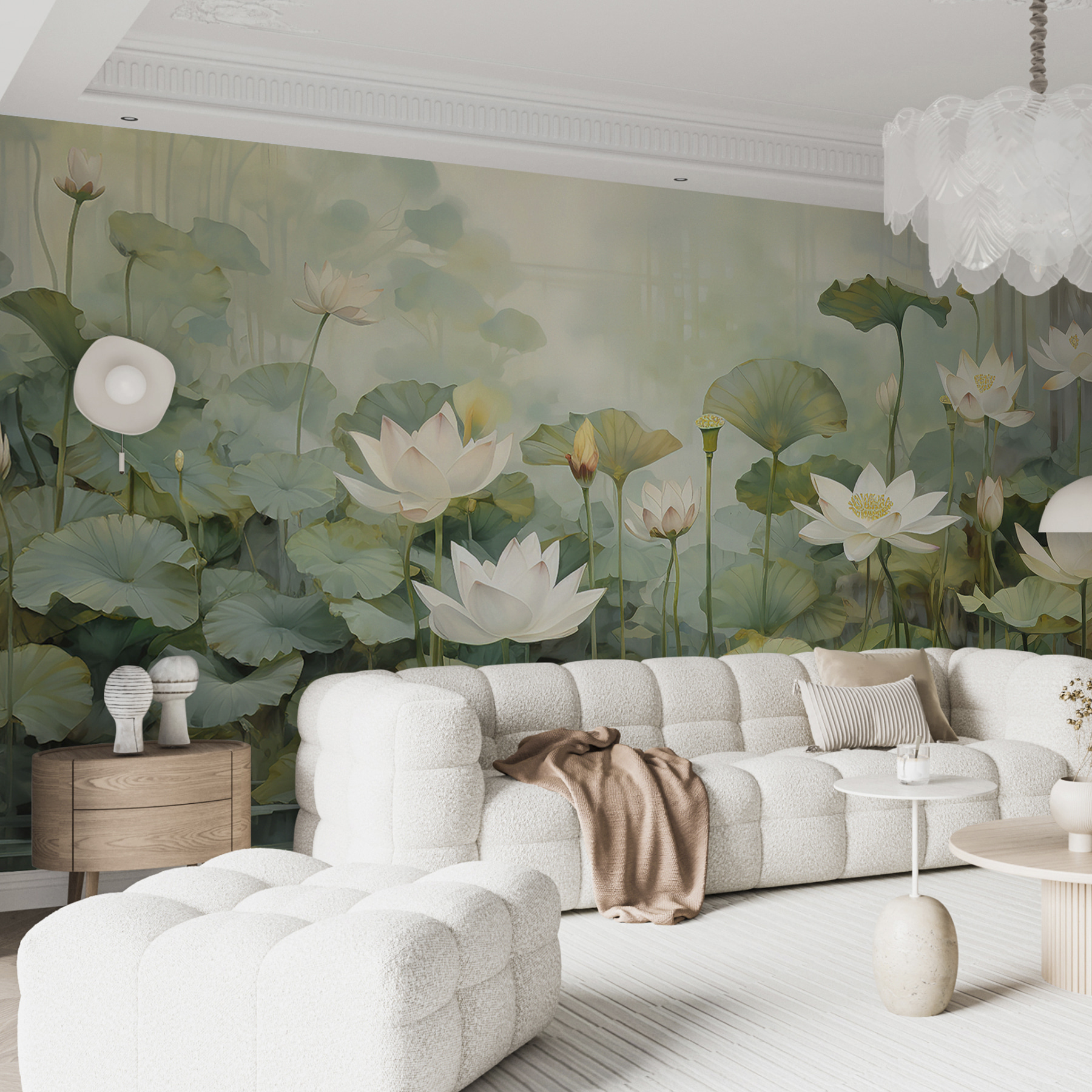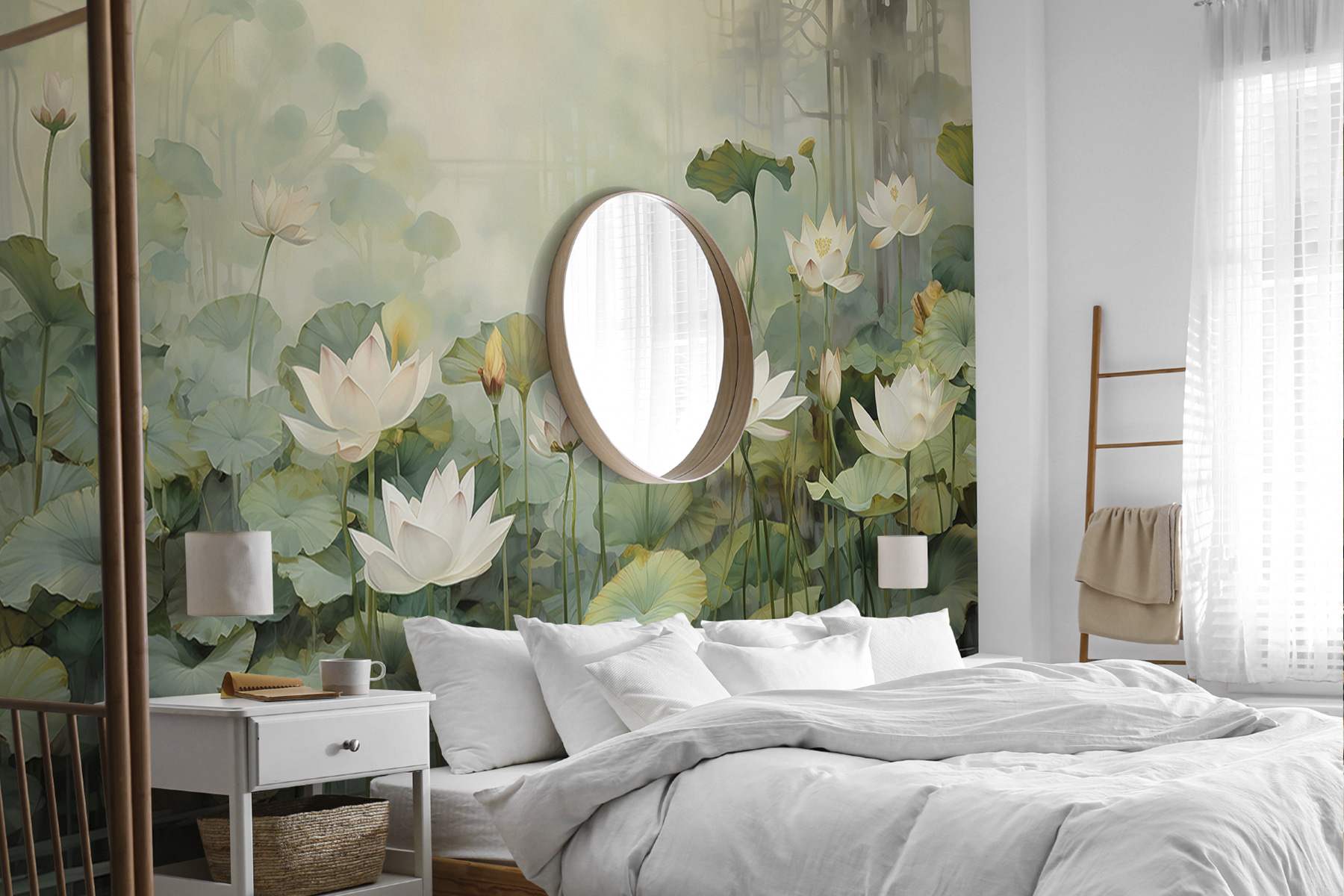 Imagine entrar num santuário sereno com este encantador mural de parede de um lago tranquilo, pontilhado de delicadas flores e rodeado por uma vegetação luxuriante. É como trazer um retiro tranquilo diretamente para a sua casa. Os tons suaves convidam-no a fazer uma pausa e a respirar, evocando a sensação de tardes preguiçosas junto a um lago calmo. Imagine uma chávena de chá e um bom livro na mão, perdido na beleza da natureza sem nunca sair da sala. Ideal para uma sala de estar acolhedora ou para um recanto de leitura tranquilo, este mural sussurra relaxamento e um toque de capricho, fazendo com que qualquer parede pareça uma janela para um jardim mágico.