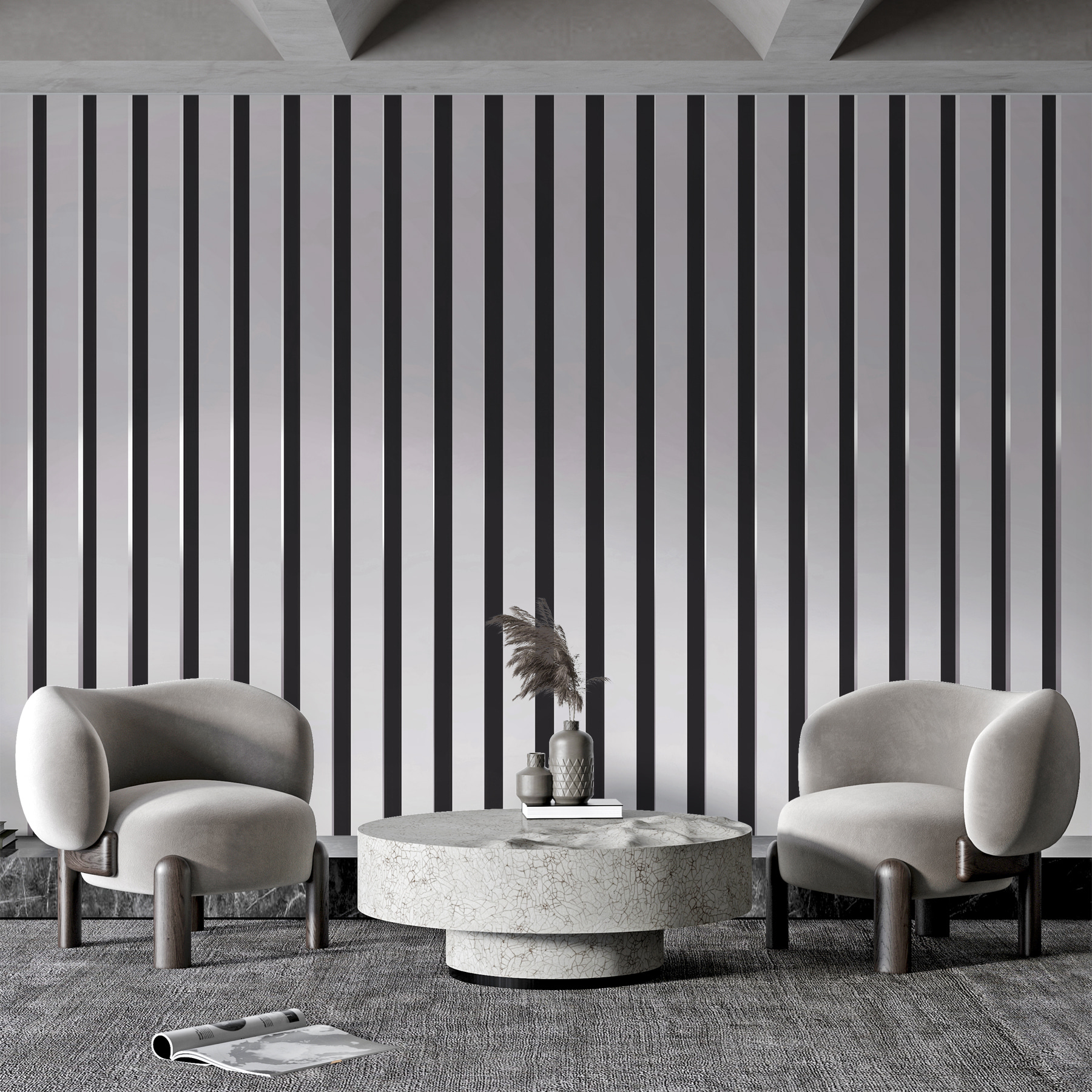 Veja este mural de parede hipnotizante, “Cerca às Riscas Pretas e Brancas”. Trata-se de uma combinação de preto e branco intemporal com uma vibração moderna e elegante. Imagine isto na sua sala de estar – pimba, sofisticação instantânea! As riscas? Oh, não são apenas linhas; trazem um design chique, quase hipnótico, que pode fazer com que qualquer parede simples se destaque com estilo.