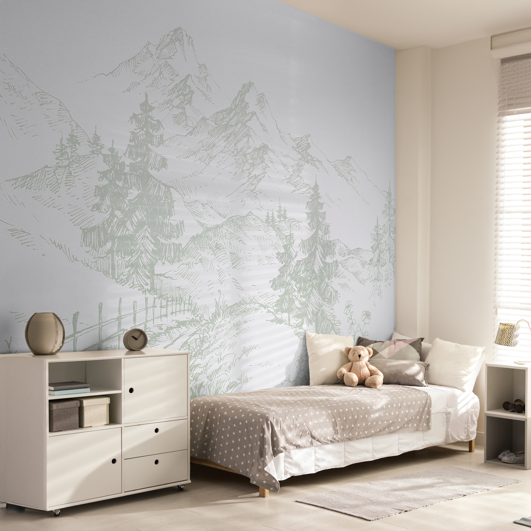Imagine que está sentado na sua cadeira preferida, a bebericar uma chávena de chá e a olhar para um mural que o transporta diretamente para uma paisagem serena de montanha. É exatamente essa a vibração que terá com o “Papel de parede Shadow of a Dog”. Esta peça não só acrescenta um toque de natureza ao seu quarto, mas também cria uma fuga serena da agitação da vida quotidiana. A ilustração suave de montanhas e árvores em tons suaves e calmantes cria uma estética elegante e amadeirada que é perfeita para qualquer divisão que deseje um pouco de calma. É como ter o seu próprio trilho de caminhada pessoal – sem as bolhas! Quer seja numa sala de estar, num quarto ou mesmo num escritório, este mural combina facilmente com quase todas as decorações, convidando à tranquilidade e a uma lufada de ar fresco. Adicione um toque de curiosidade e uma pitada de paz às suas paredes e deixe a sua imaginação vaguear sempre que olhar para esta cena convidativa.