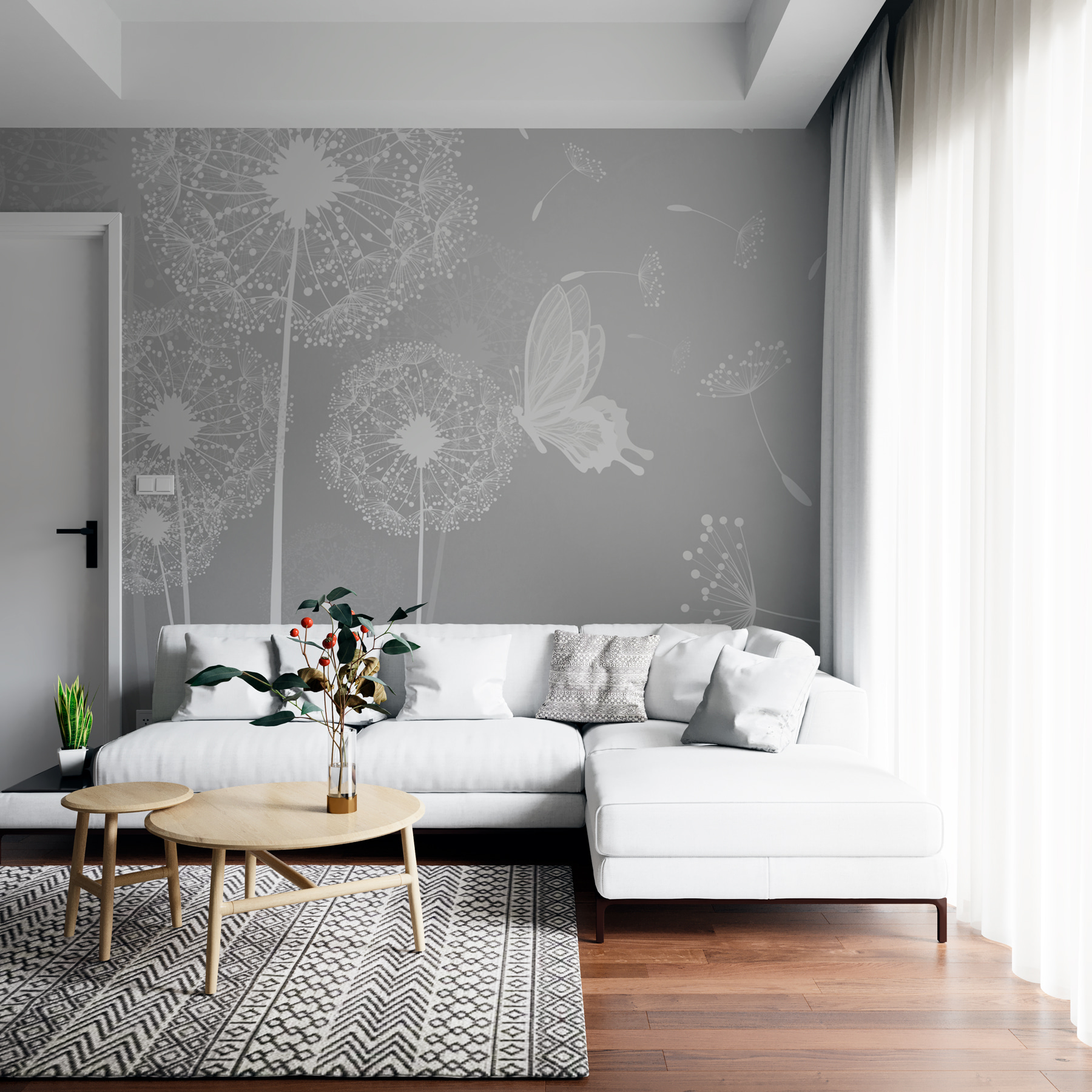 Imagine o seguinte: Está reclinado na sua sala de estar, com uma chávena de chá na mão, e o seu olhar desvia-se para a parede, saudado pela visão de dentes-de-leão caprichosos e borboletas a esvoaçar. Este mural, encantadoramente chamado “Dentes-de-leão brancos com borboletas a voar”, transforma o seu espaço num refúgio arejado e sereno. Os delicados dentes-de-leão, com aquelas borboletas de sonho, dão um toque de magia da natureza mesmo dentro de casa. Perfeitas para qualquer amante da natureza que deseje um pouco de beleza serena – são um divisor de águas. É como um dia suave e arejado passado ao ar livre, mas no conforto da sua casa. Aconchegante e cativante – um verdadeiro impulsionador do humor. Mergulhe no relaxamento sempre que o vislumbrar, talvez até deseje um dente-de-leão!