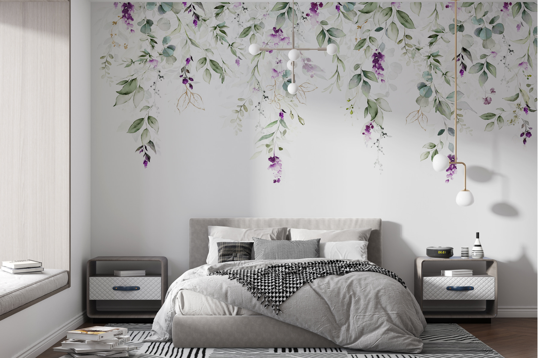 Quer iluminar o seu espaço com um toque de natureza? Veja este encantador mural de parede de flores roxas sobre um fundo branco imaculado. Tem esta vibração suave, de aguarela, que o faz sentir como se estivesse num jardim tranquilo. Imagine-se a acordar todos os dias com este belo visual – um verdadeiro impulsionador da disposição, certo? Os tons roxos sobressaem apenas o suficiente para chamar a atenção sem serem demasiado intensos. Perfeito para qualquer divisão que precise de um pouco de vida e cor, este mural combina lindamente com todo o tipo de decoração. É ideal para dar um toque suave e botânico à sua casa. Simplesmente de sonho!
