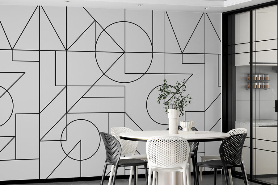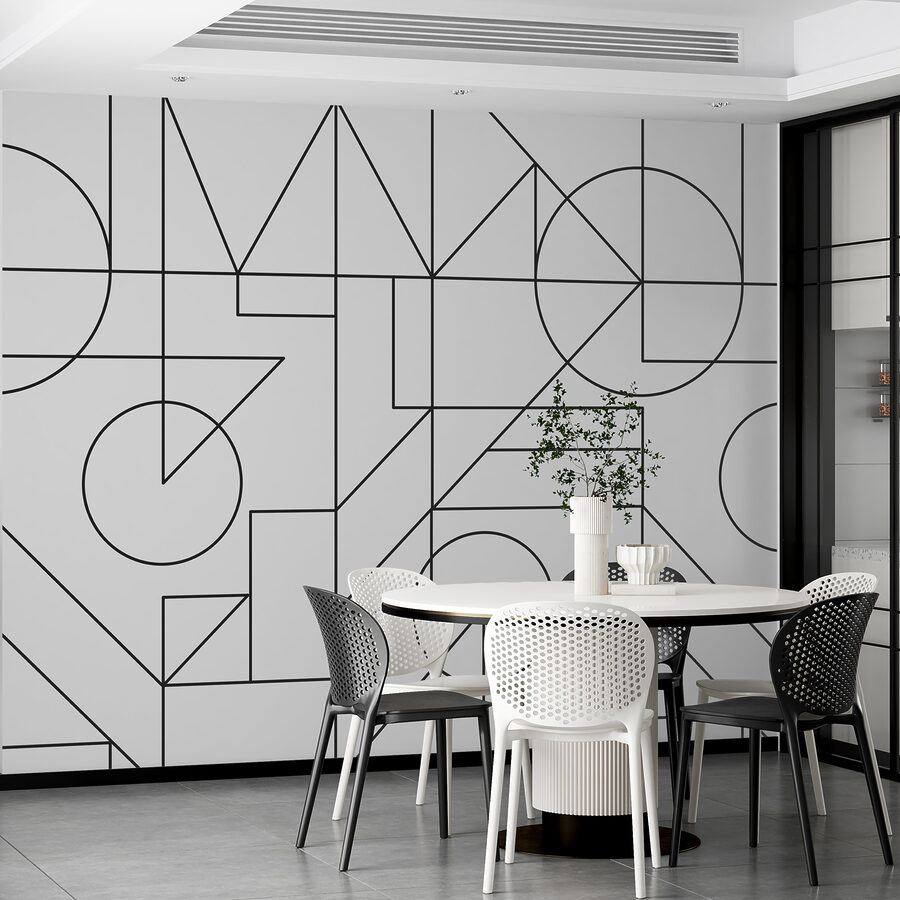 É ótimo para qualquer espaço, seja a sua sala de estar, escritório ou até mesmo aquele corredor vazio que está a pedir um pouco de amor. O esquema de cores preto e branco? Puro clássico. Combina sem esforço com qualquer estilo de decoração. Além disso, há algo de tão reconfortante nos desenhos geométricos – trazem uma sensação de ordem e equilíbrio, quase como se o protegessem neste mundo caótico. Por isso, vá em frente, deixe este mural transformar a sua parede numa obra-prima.