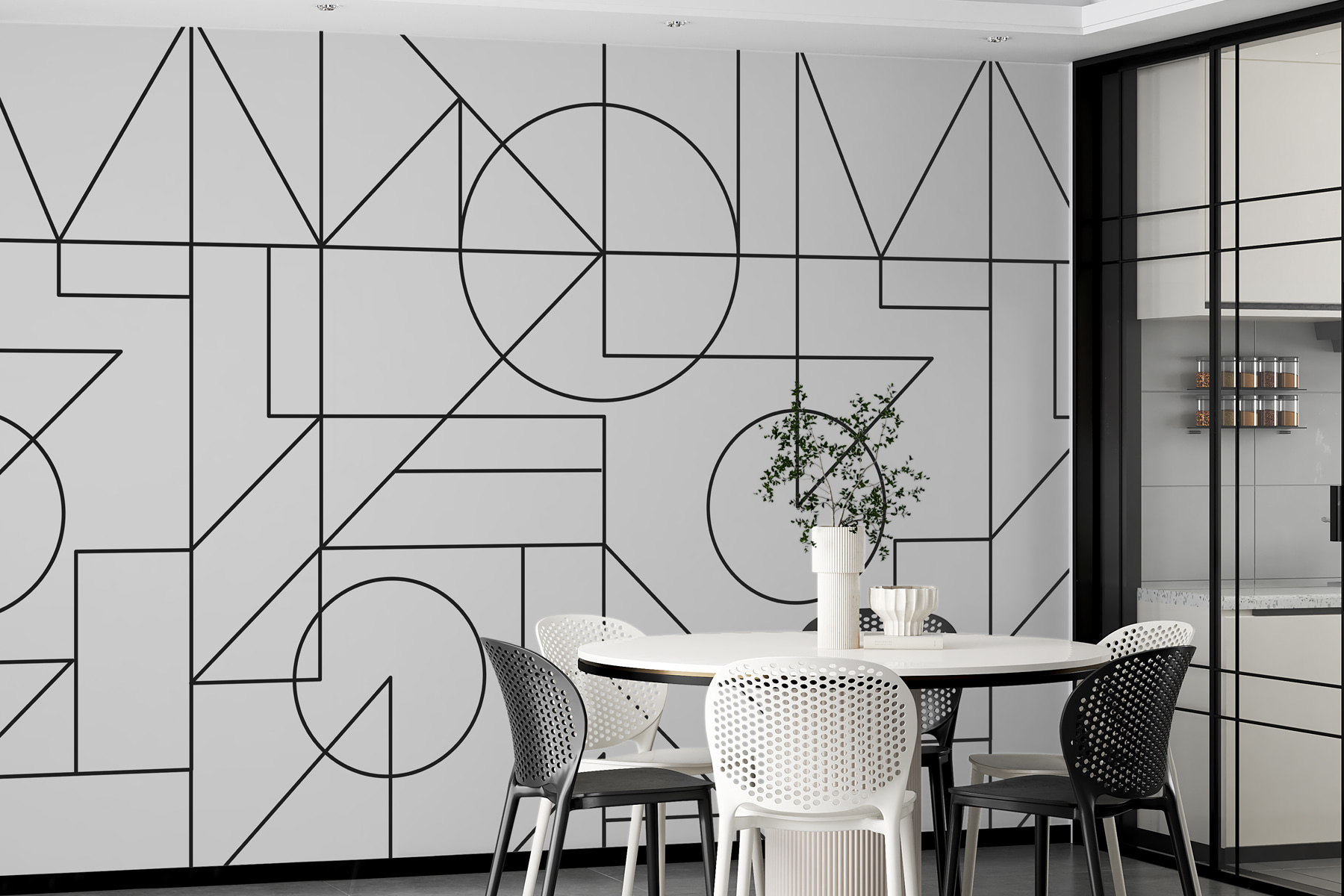 É ótimo para qualquer espaço, seja a sua sala de estar, escritório ou até mesmo aquele corredor vazio que está a pedir um pouco de amor. O esquema de cores preto e branco? Puro clássico. Combina sem esforço com qualquer estilo de decoração. Além disso, há algo de tão reconfortante nos desenhos geométricos – trazem uma sensação de ordem e equilíbrio, quase como se o protegessem neste mundo caótico. Por isso, vá em frente, deixe este mural transformar a sua parede numa obra-prima.