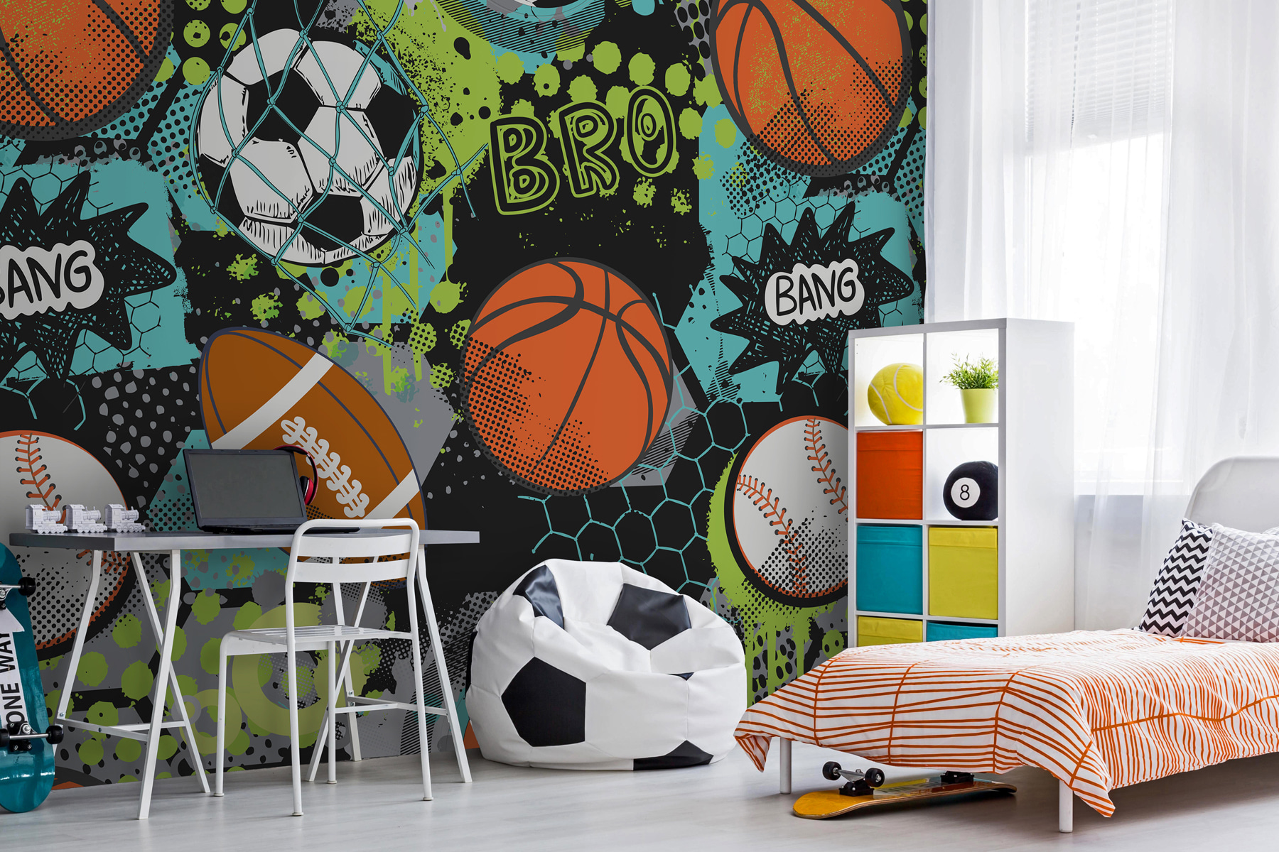 Traga alguma diversão animada para o seu espaço com este “Mural de parede Sports Collage com cores vibrantes”. Perfeito para crianças ou adolescentes, é como um confronto desportivo mesmo na parede – mas sem vuvuzelas, prometo! Azuis vibrantes, verdes e toques de basquetebol laranja salpicam a cena, dando a sensação de um jogo em pleno andamento. Os jovens fãs de desporto vão ficar entusiasmados e, mesmo os que não gostam de desporto, não podem negar o quão fixe e enérgico isto parece. Além disso, tem palavras como “Bang” e “Bro” misturadas – é quase como se a parede estivesse a responder! Coloque-o num quarto, numa sala de jogos ou mesmo num espaço de uma jovem (quem disse que os desportos não são fabulosos?) e veja toda a divisão ganhar vida com ação e entusiasmo. Perfeito para quem quer uma pitada de pizazz e uma pitada de diversão na sua decoração.